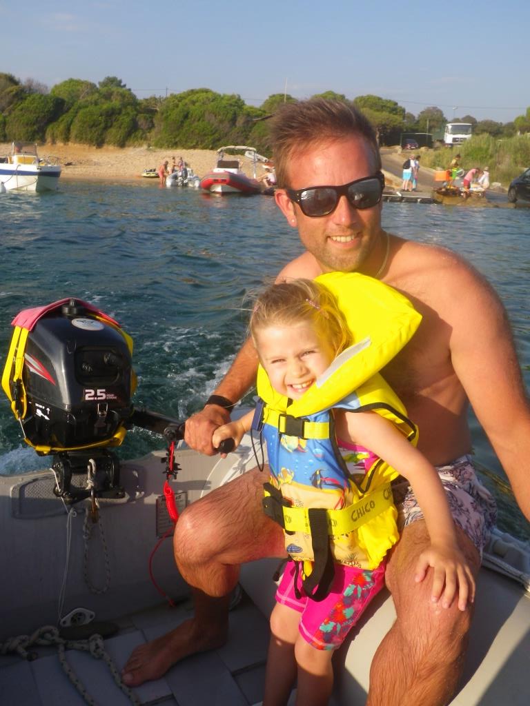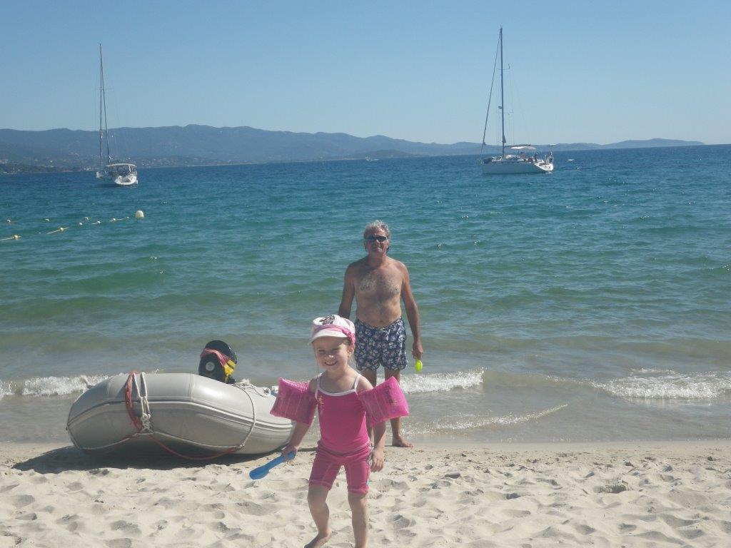 Dès le lendemain matin nous finalisons l’avitaillement et partons vers le premier mouillage et surtout la première plage. En route Lilou conduit direction le mouillage d’Aspretto, juste en face dans la baie d’Ajaccio. Après un bon déjeuner, nous embarquons en annexe direction la plage.
