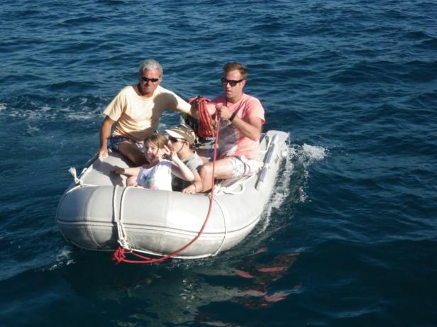 Les filles apprennent le pilotage de l’annexe et Nico s’exerce à la pêche