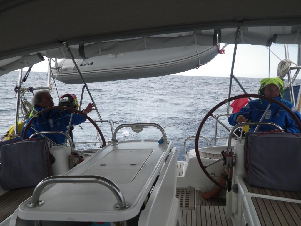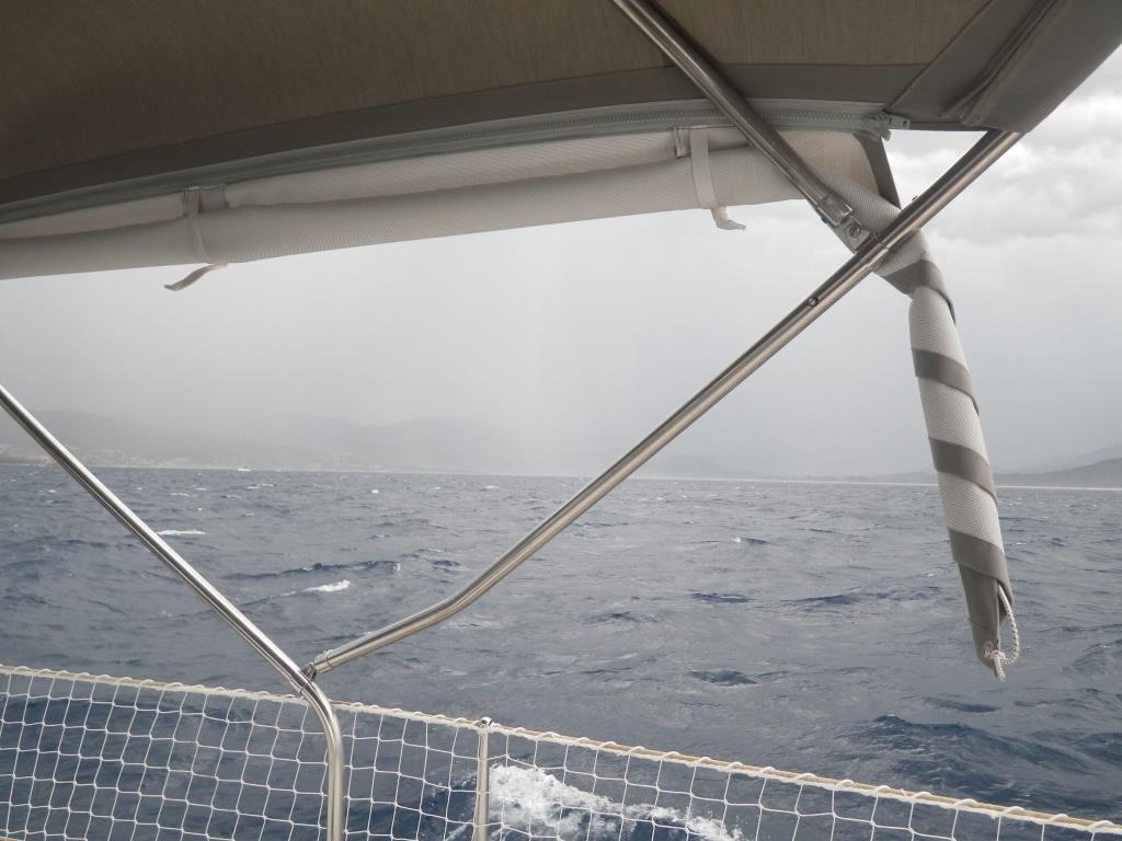 Arrivée sous l’orage à Propriano, on amorti les vestes de quart.