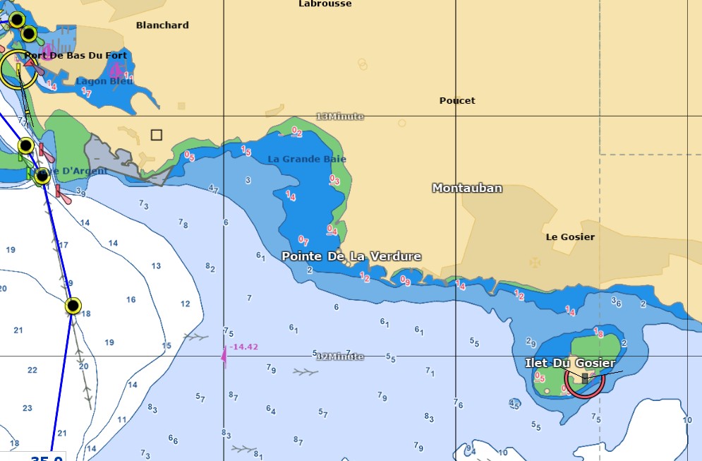Voilà le type de message que nous allons recevoir pendant la traversée : Pas de vents forts supérieurs 25n ni de calmes prévus à ce jour pour les 6 prochains jours. Anticyclone centré 27N-45W se décale vers l’Est. Dépression centrée 38N-69W va se décaler vers l’E repoussée par l’Anticyclone bien établi. Vous êtes sur la partie SW de l’anticyclone ce qui vous amène un vent secteur E moyen autour de 15/20n voir un petit peu plus. Une prochaine dépression va se former dans les jours suivants dans le Nord dont le front descendra assez sud sur la partie W de l’anticyclone. Cela pourrait amener des vents secteur S/SW pour les retardataires. Il n’y a pas de calmes prévus pour le moment, cela dépendra de l’évolution de l’anticyclone. Routage : naviguer au 30/40° vrai (attention déclinaison) en privilégiant la vitesse. WP moyen : 19°20N – 59°33W Bryell qui est le plus à l’Est va aller sur Antigua pour régler un souci vu avec la direction maritime. Aucun problème grave. Les derniers le verront peut-être passer à vue ou à l’AIS. Pitchounet vous faites une route très Nord. Pouvez-vous lofer autour du 30° en gardant une bonne vitesse ? Sinon rien de particulier à déclare, vous allez traverser rapidement si les conditions restent ainsi mais cela peut évoluer.