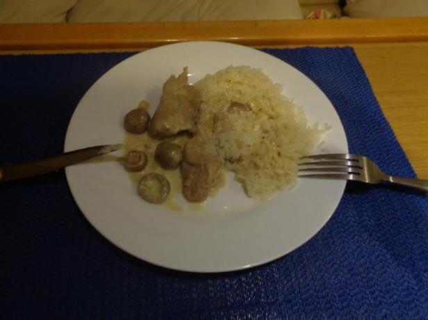 A part cela tout va bien à bord, nous passons beaucoup de temps à la lecture. Ce soir filet mignon sauce normande accompagné de son riz blanc, et pour finir dégustation d’une crème au chocolat.