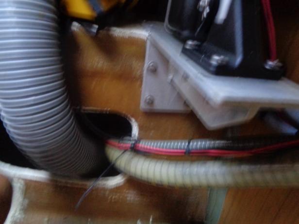 La première opération est de le vider ensuite il faut démonter les cloisons pour enfin atteindre le pilote automatique. Le constat est qu’il y a un bruit métallique anormal dans le pilote. L’opération consiste donc à enlever la protection plastique pour accéder au moteur électrique. Ensuite resserrage de toutes les vis et boulons, et ce n’est pas du luxe, puis tout remonter et tester. Le bruit métallique a disparu mais subsiste malheureusement les bruits de grincements des cloisons sur lesquelles sont fixées les poulies de renvoi des drosses de barre.