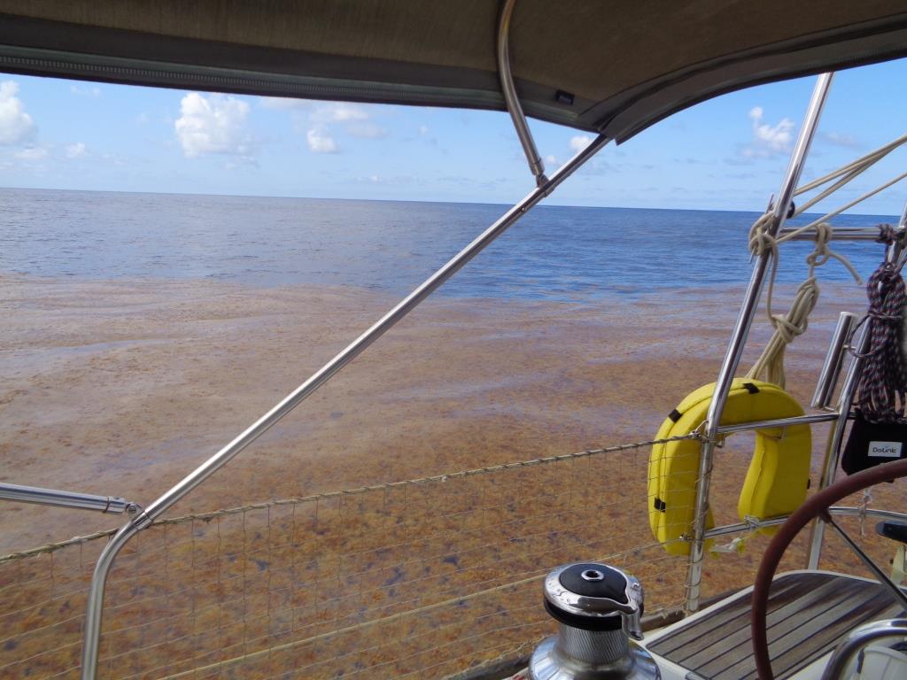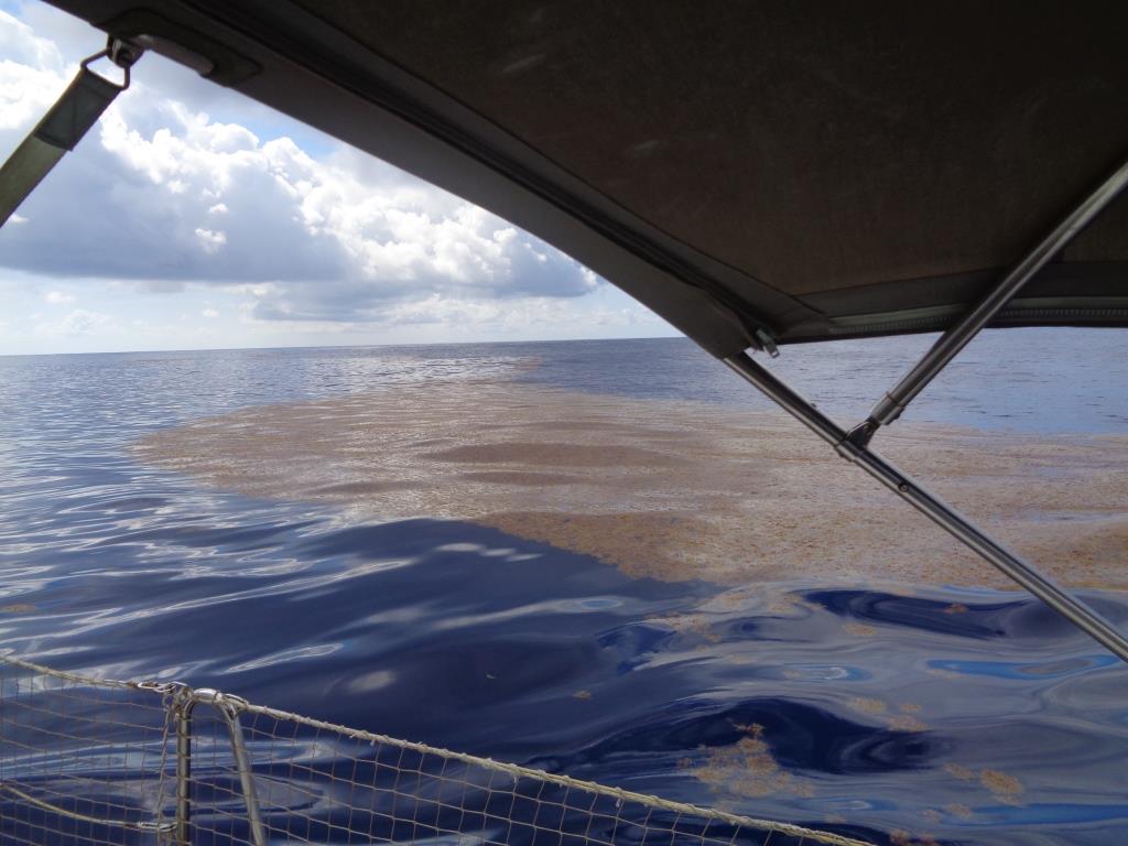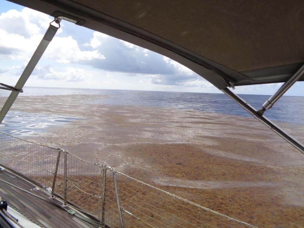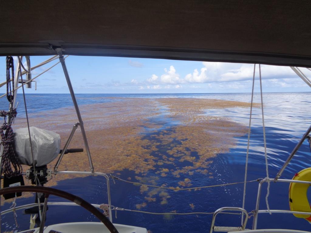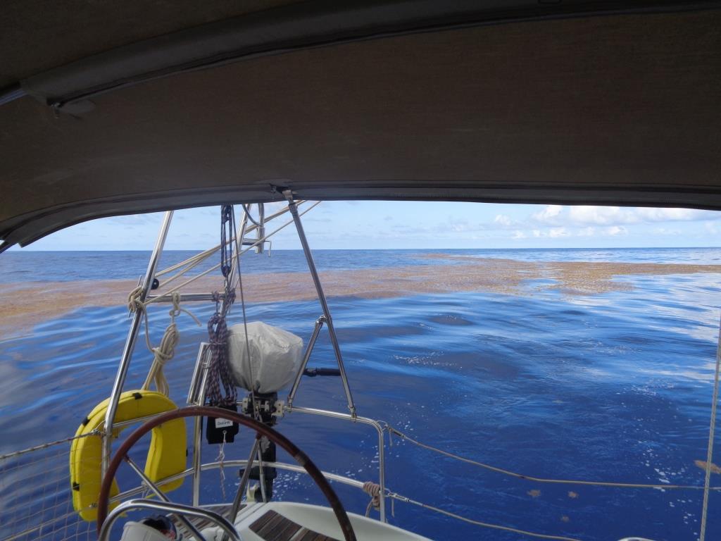 Dans la matinée nous sommes passés dans un « champ » de sargasses. Cette calamité, non contente de polluer les côtes des iles de la caraïbe, est présente également en mer et très haut en latitude, nous sommes au 29°30’ soit à la hauteur de Tenerife et en plein milieu de l’atlantique. C’est la concrétisation de tous les discours des scientifiques du GIET et autres qui n’arrêtent pas de dire à nos semblables que nos activités engendrent des désordres au niveau de la planète. Discours qui n’est pas entendu mais qui ne nous empêchera pas de nous mettre la tête dans le mur avec in fine certainement l’extinction de la race humaine, car la planète s’en remettra même si cela prendra beaucoup de temps.