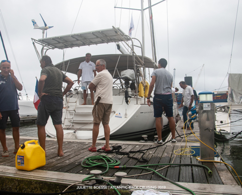 Nouvelle journée sous le signe du moteur car le vent n’est toujours pas de la partie. Cet après-midi nous ajouterons 2 bidons de 20 litres de gasoil dans le réservoir ce qui devrait réajuster le niveau au trois quart.