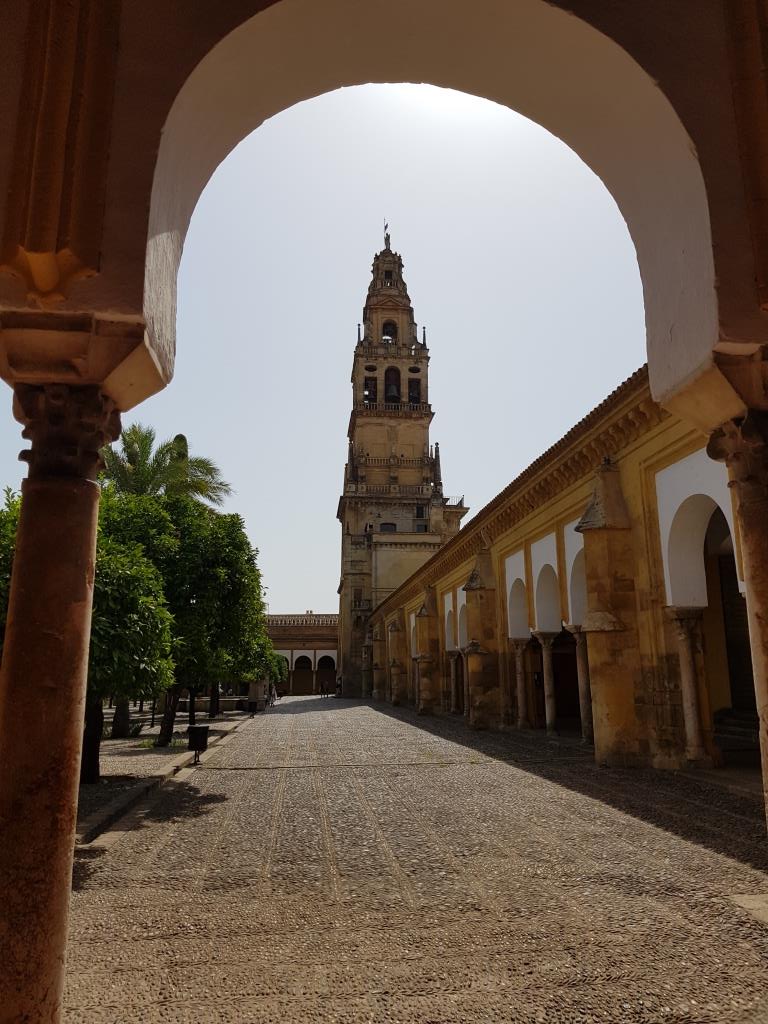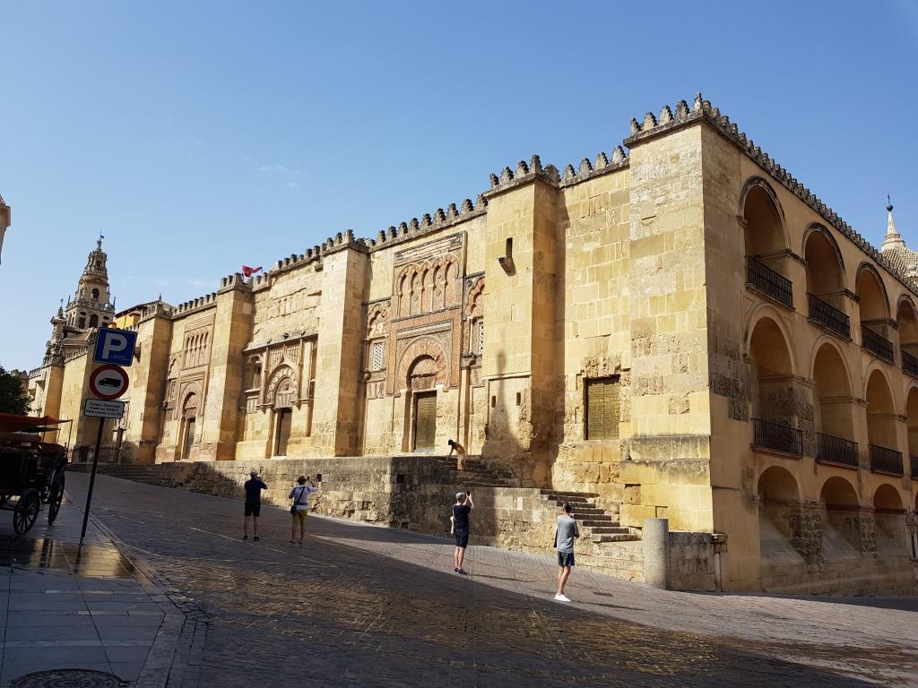 L’entrée dans la ville historique est épique car « Maps.Me » nous fait passer par des rues dans lesquelles nous sommes obligés de plier les rétroviseurs extérieurs pour passer. Nous arrivons cependant sans encombre à l’hôtel Eurostar Maimonides qui est juste devant la Mezquita (mosquée), idéalement situé dans le centre historique de Cordoue. Une fois la voiture stationnée dans le parking de l’hôtel et la prise de possession de la chambre nous allons faire un petit tour de repérage. Il sera très vite fait en raison de la chaleur qui avoisine les 40° et qui est, à cette heure de la journée, particulièrement difficile à supporter.