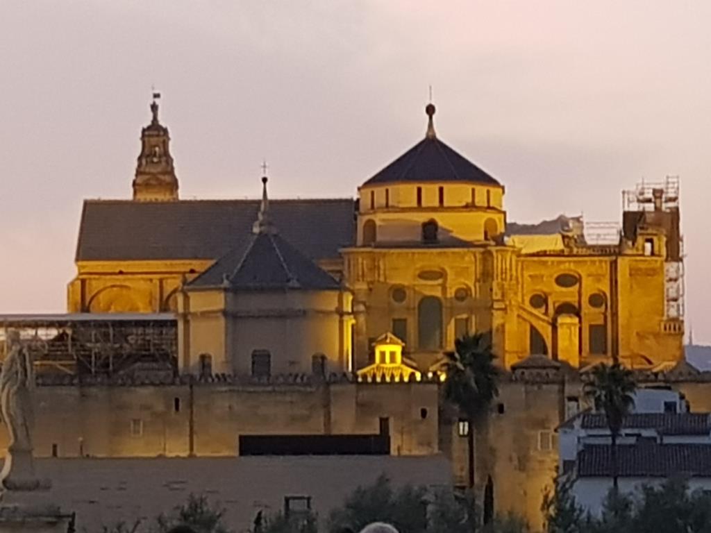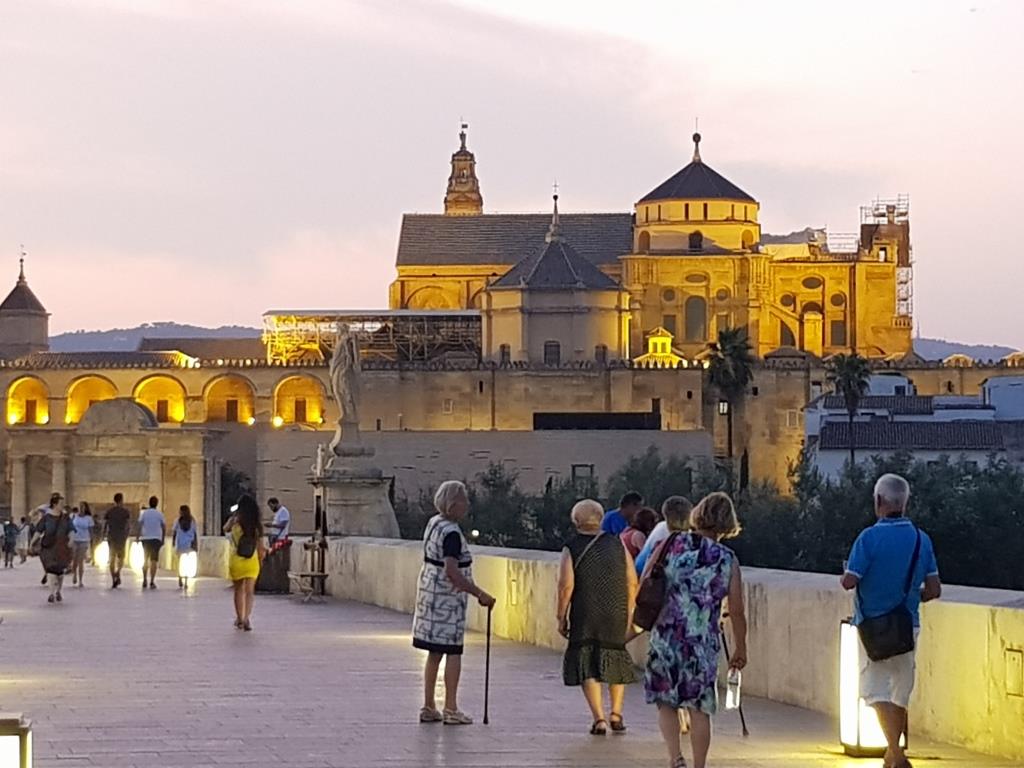 Le soir à 20 heures, nous allons diner à la Bodega Mezquita (Céspedes) ou nous dégustons un Delirio (Grenache, Syrah et Merlot) avec des Tapas (Gaspachio andalous ; salade chaude pois chiches crème d’houmous ; aubergines frites du califa ; boulettes de viandes avec une sauce amandes safran) pour finir un assortiment de desserts. Nous ne rentrons pas directement à l’hôtel et allons faire un tour sur le pont romain afin de digérer.