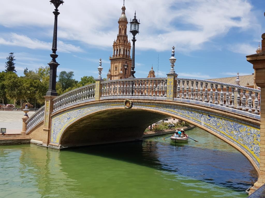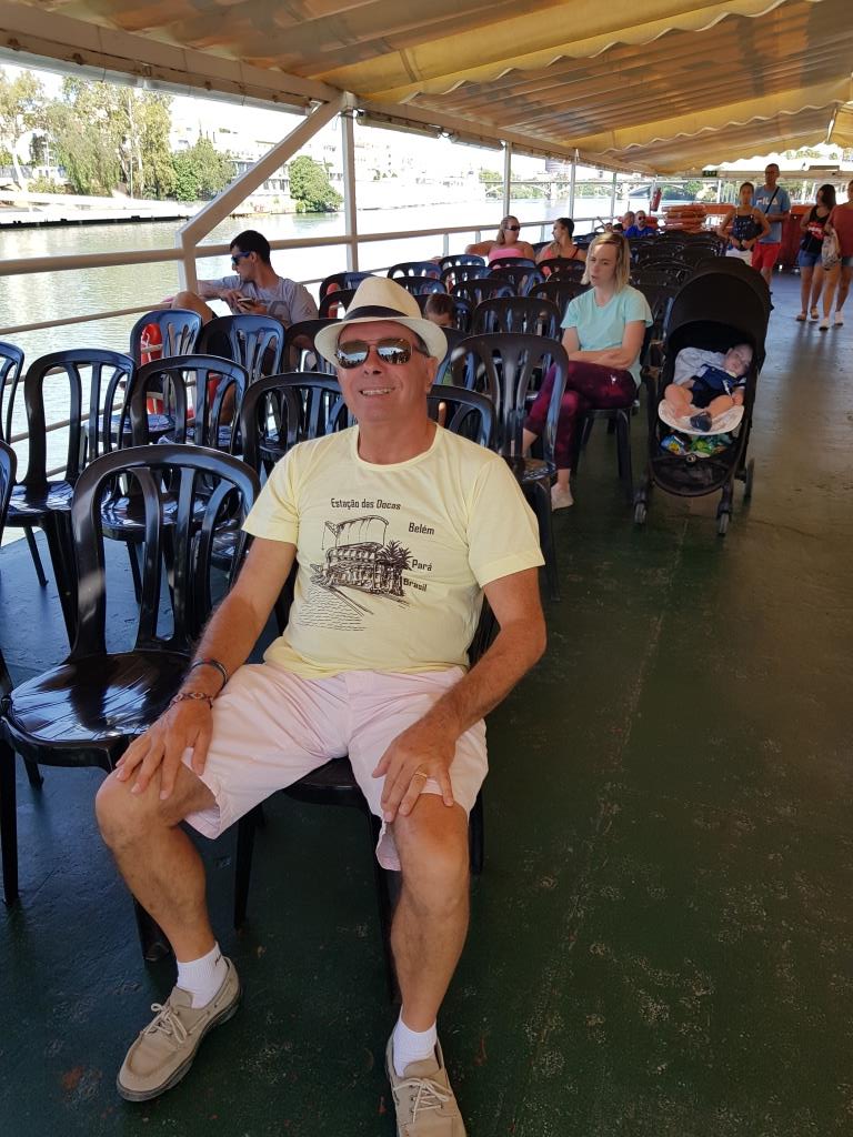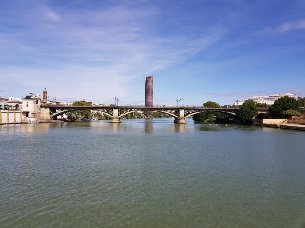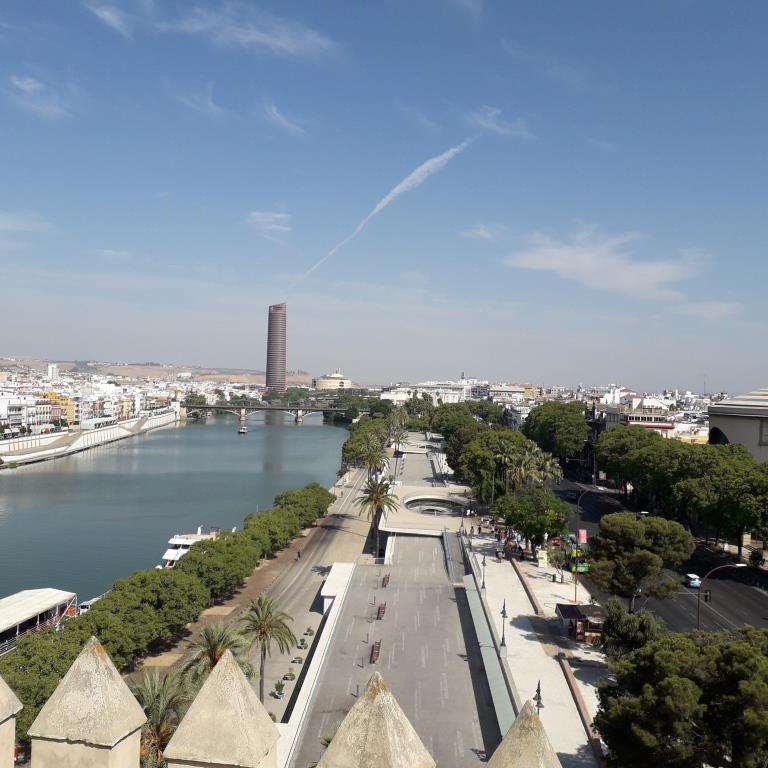 Samedi 27 juillet et dernier jour à Séville, nous avons pris des billets pour une balade en bateau sur le Guadalquivir à partir de 11 heures. Balade d’une heure qui part de la tour de l’or pour descendre jusqu’au pont de las delicias puis remonter le Guadalquivir jusque la tour Schindler puis retour à la tour de l’or.