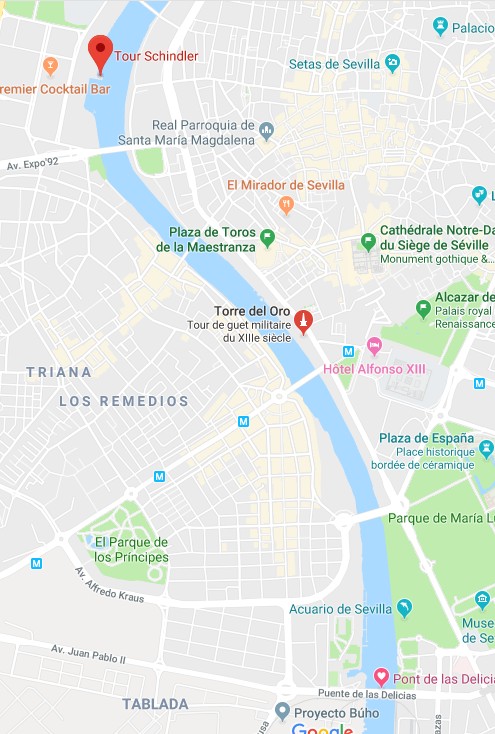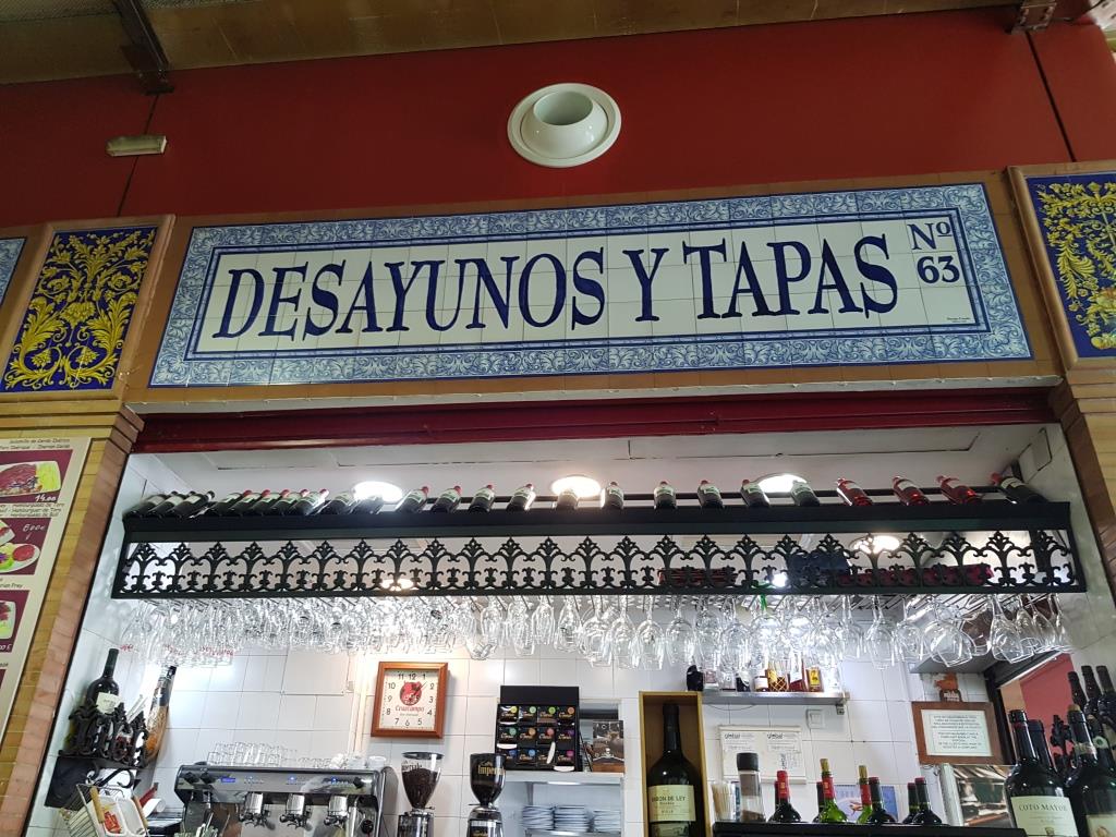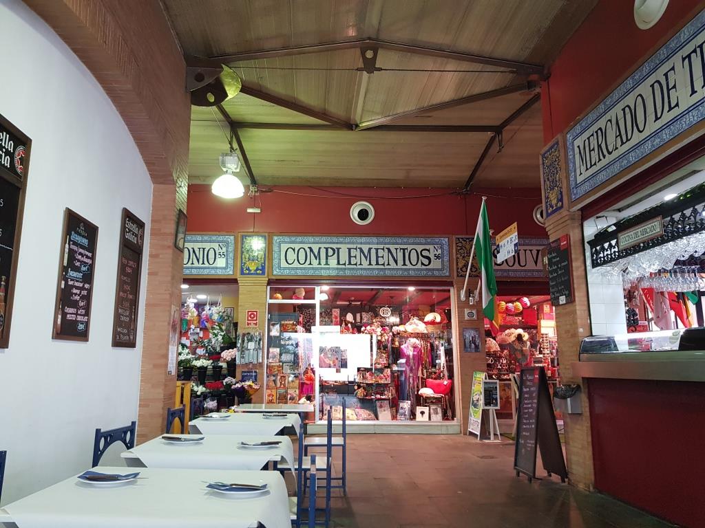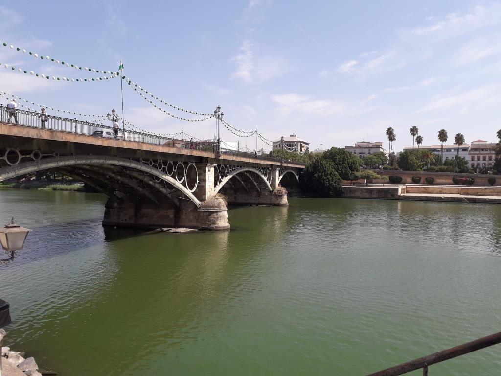 Nous traversons le Guadalquivir par le pont de San Telmo et empruntons les quais rive droite jusqu’au puente Isabelle II ou puente Triana, pont imaginé sur le modèle du pont du Carrousel de Paris . On peu y admirer la Capilla del Carmen. Nous y trouvons sur la gauche de la chapelle le Mercado Triana où nous déjeunons.