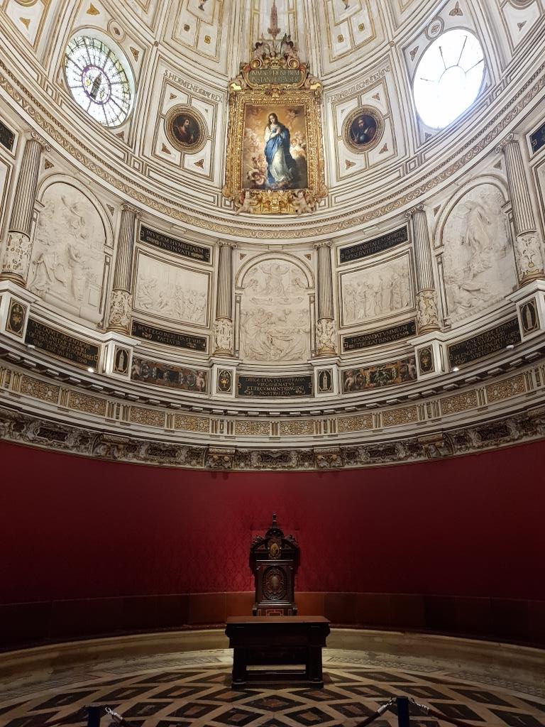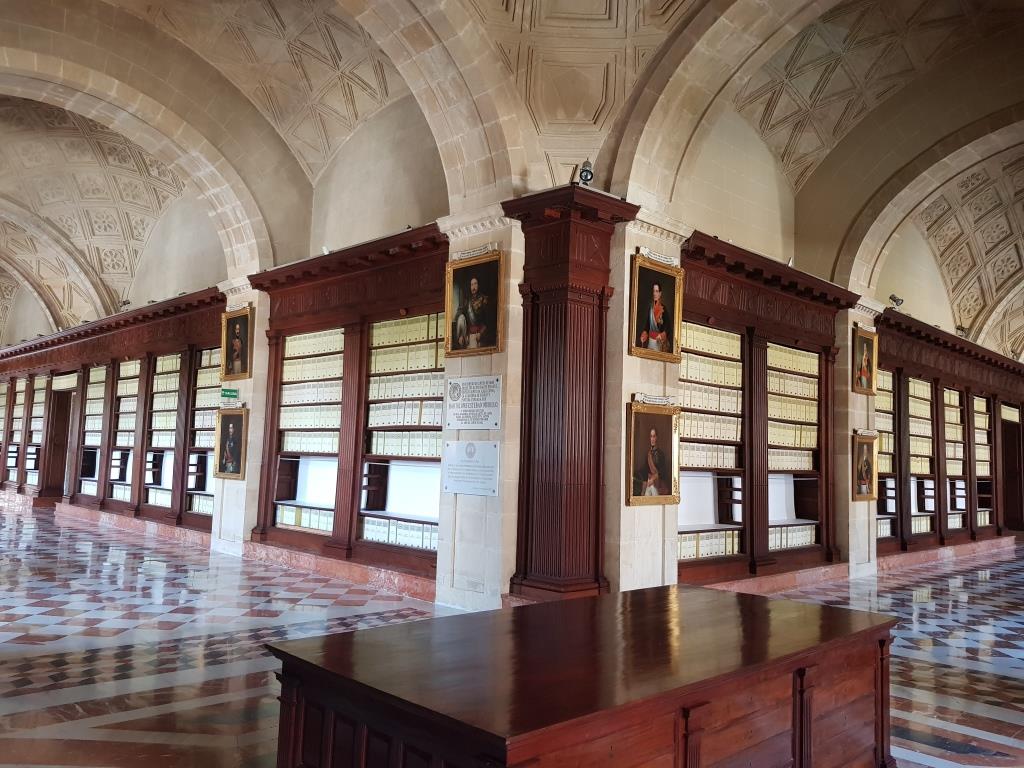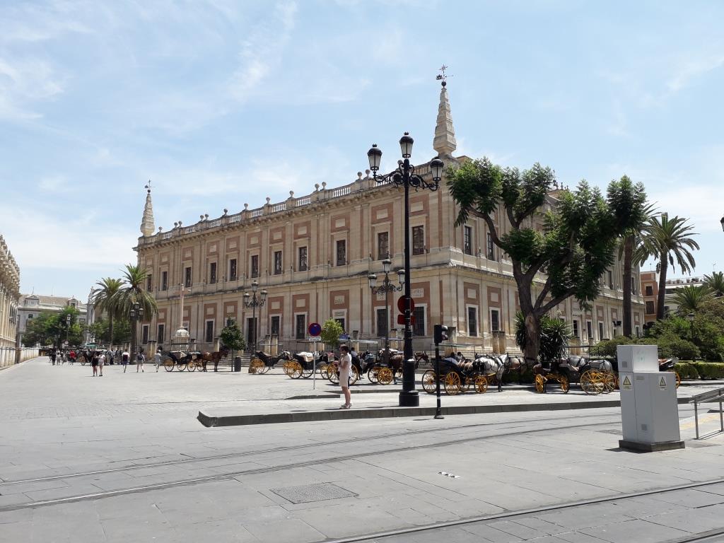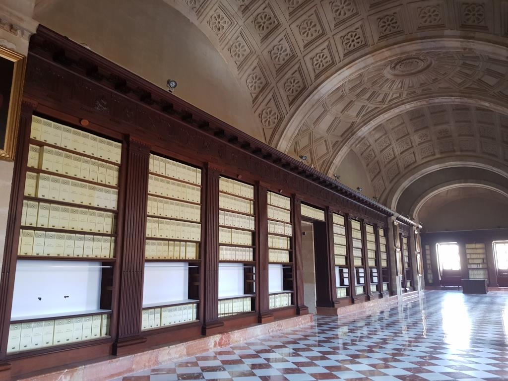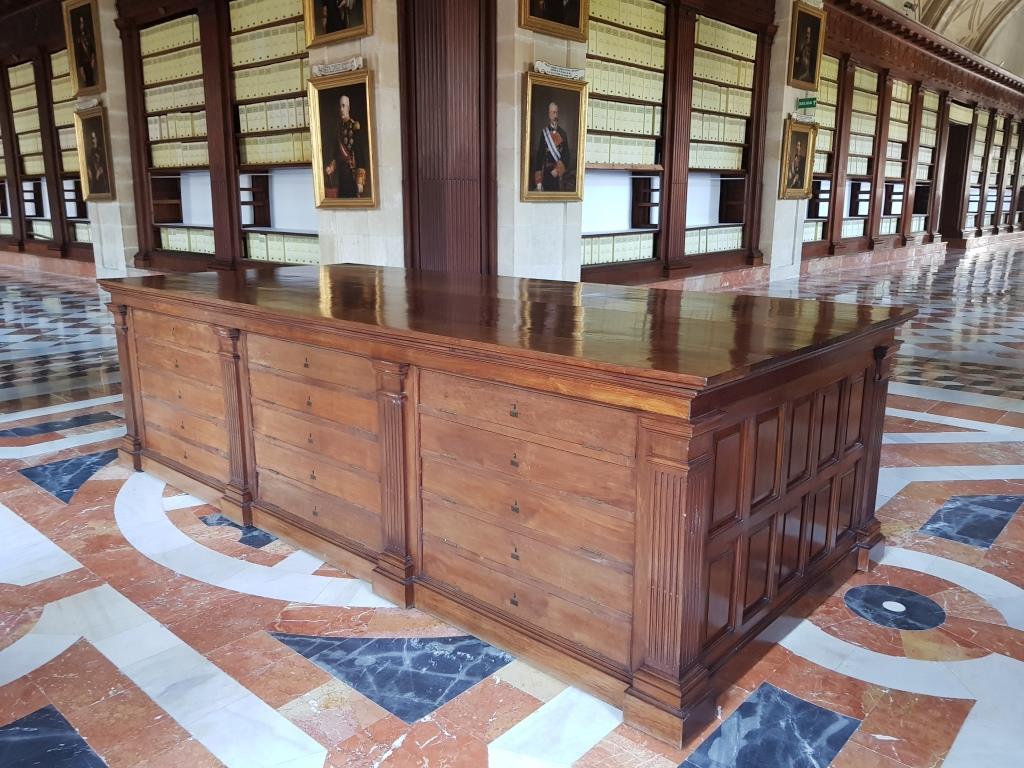 Comme nous sommes en avance et que le bâtiment est juste à côté de la cathédrale, nous visitons les archives des indes. Ne croyez pas y trouver les archives, ce bâtiment est intéressant par la beauté de son intérieur tout de marbre et bois précieux.