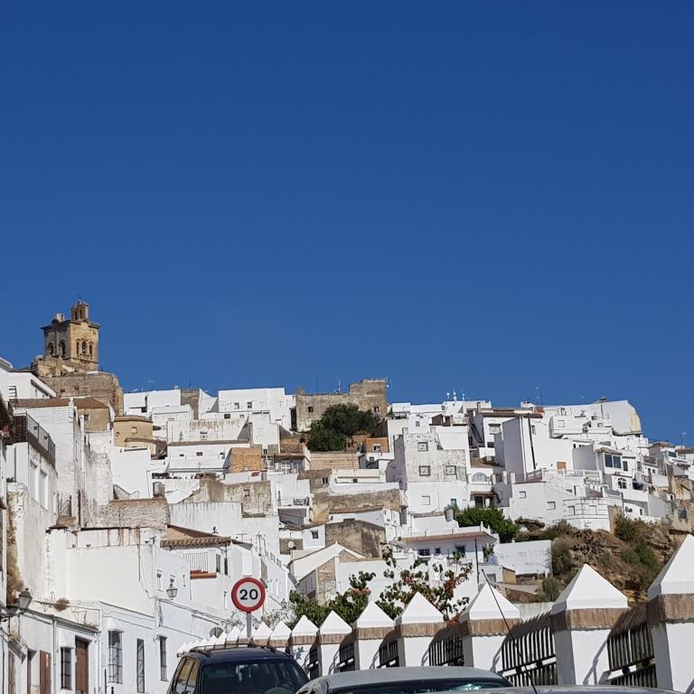 Le lendemain matin nous partons à la découverte des villages blancs, nous débutons par Arcos de la Frontera. Nous laissons la voiture en bas de la citadelle et entamons l’ascension direction le chateau d’Arcos. Du Balcón de la Peña Nueva nous admirons la campagne alentour.