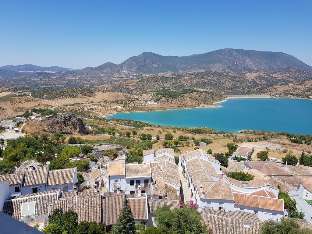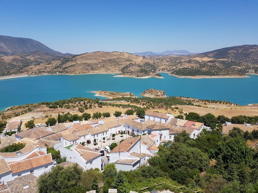 Nous quittons donc Grazelama pour Zahara de la Sierra. La ville se trouve au centre du Parque Naturel de la Sierra de Grazalema et plus précisément au pied de la Sierra du Jaral, entre le fleuve du Guadalete et le Bocaleones. La commune a une superficie de 72,48 km2, elle se trouve à 500 mètres d’altitude et est à 124 kilomètres de Cadix. L’économie du village repose pour l’essentiel, sur l’agriculture et le tourisme rural et sportif.