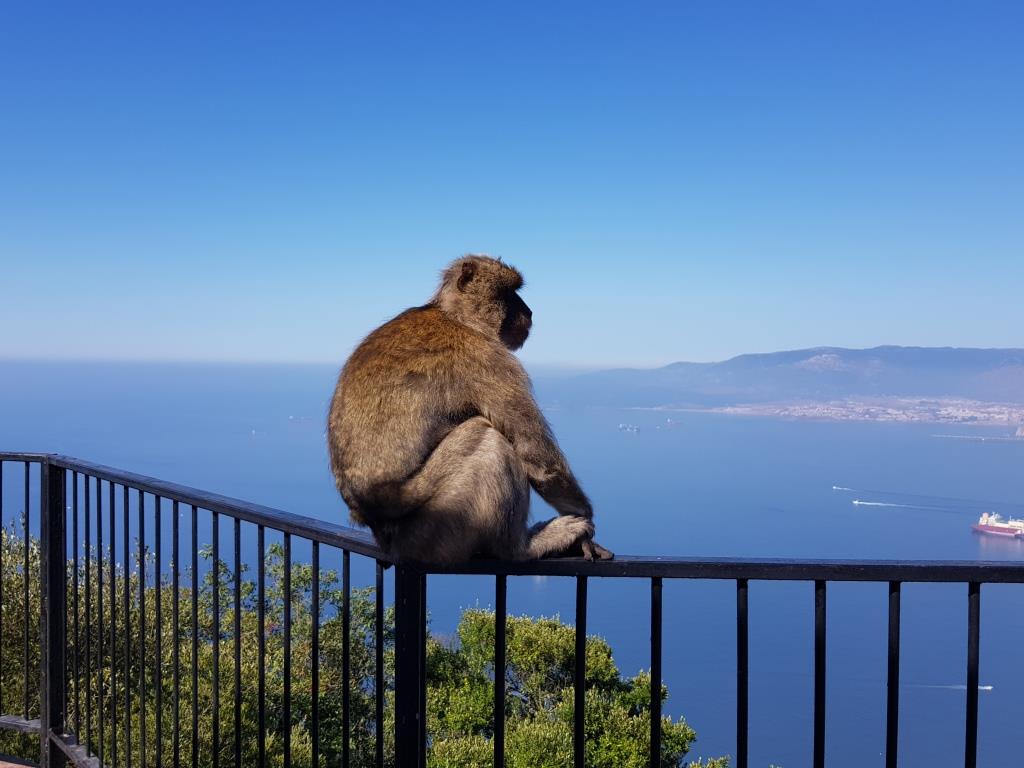 Sur le chemin nous croisons une multitude de petits singes, également appelés magots, ces macaques berbères venus d’Afrique du Nord auraient été introduits à Gibraltar au XVIIIème siècle. Une population de près de 250 singes qui se promènent notamment du côté de Ape’s Den, en haut du téléphérique. On peut également les voir au niveau des Upper Galleries. Protégés par un décret du gouverneur de Gibraltar en raison de leur rareté, ces macaques sont d’autant plus précieux aux yeux de sa très gracieuse majesté qu’une légende raconte que la présence anglaise prendra fin le jour où il n’y aura plus de singe sur le Rocher.