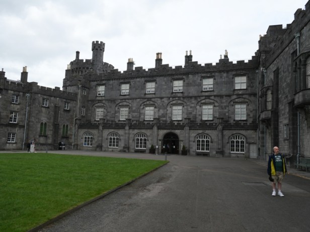 Une fois stationné correctement pour 2 nuits, nous partons à la découverte de la ville, vue l’heure nous décidons de déjeuner, nous nous arrêtons au Rafter’s Gastropub. Nous allons ensuite à l’office du tourisme où une charmante dame nous explique ce qu’il faut voir, elle nous fourni également le programme des concerts du soir qui se déroule dans les pubs. Nous commençons par visiter le château du Kilkenny, c’est un des plus grands châteaux d’Irlande, construit entre 1192 et 1207 par Guillaume de Clare, 1er Comte de Pembroke pour contrôler un passage à gué de la rivière Nore et la jonction de plusieurs voies. Il était le symbole de l’occupation normande et, dans sa construction originelle du XIIIe siècle, il constituait un élément important des défenses de la ville avec quatre grosses tours circulaires aux angles et un fossé massif, dont une partie est toujours visible sur la Parade.