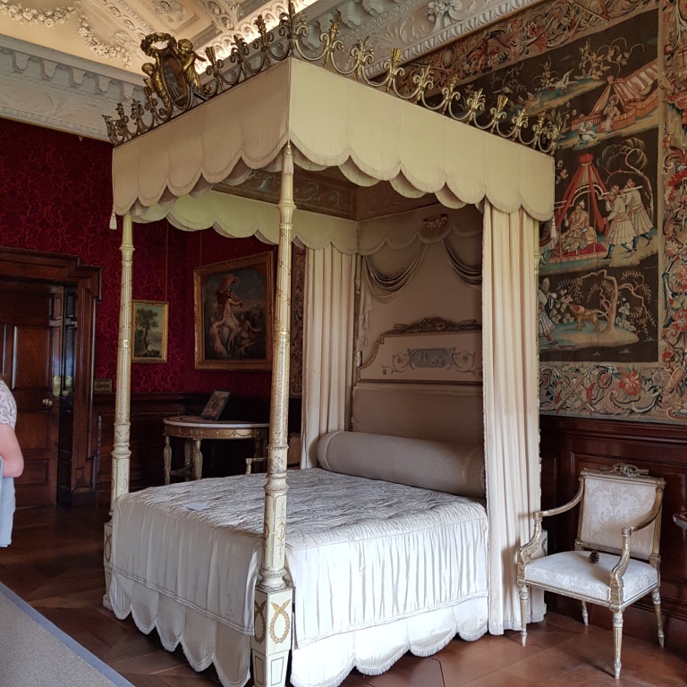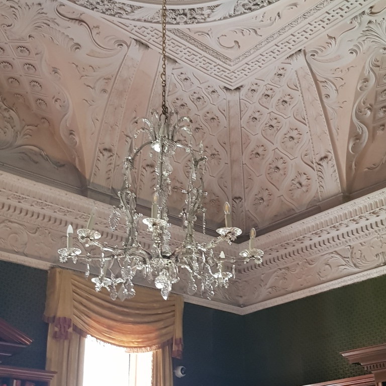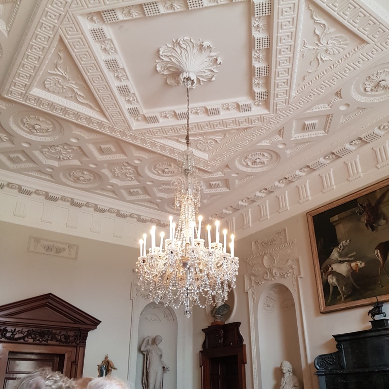 Le lendemain matin 28 juin départ pour Dublin où nous avons réservé au camping Camac Valley situé à 16 km à l’est de Dublin. Afin d’avoir le temps de visiter la villesans courir, nous pensons rester de mercredi à dimanche soir. Mais comme je le disais précédemment en raison de l’affluence du samedi nous avons fait une réservation en 2 temps, du mercredi soir au vendredi soir sur du dur avec électricité et sur de l’herbe sans électricité pour les 2 jours restants. En effet, bien que nous n’ayons pas de nécessité d’être branchés électriquement, ceci me permet de rédiger ce blogue sur l’ordinateur. En route nous faisons une halte à Russborough House demeure seigneuriale située près de Blessington dans le Comté de Wicklow. C’est un excellent exemple d’architecture palladienne conçu entre 1741 et 1755 par Richard Cassels pour Joseph Leeson comte de Milltown. L’intérieur de la demeure contraste avec l’extérieur austère grâce à des plâtreries dans pratiquement toutes les pièces. Russborough House a abrité deux collections d’art plastique. La première collection fut donnée à la National Gallery of Ireland à la suite du décès du dernier comte de Milltown. En 1952, Sir Alfred Beit (le neveu du sud-africain éponyme et fils de Sir Otto Beit) acheta la demeure où il exposa sa propre collection de famille, comprenant des œuvres de grands artistes tels que Goya, Vermeer, Pierre Paul Rubens et Thomas Gainsborough. Cette collection fut à plusieurs reprises l’objet de cambriolages. Beaucoup d’œuvres ont été données à l’État.