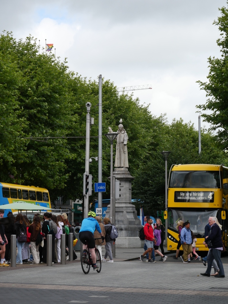 Dimanche 2 juillet nous n’avons un bus qu’à 11h30, la journée sera donc plus courte que les autres. nous quittons le bus sur le quai Ormond Upper et nous nous dirigeons vers O’Connel street l’avenue la plus large de Dublin mais qui n’est bordée que de Fast Food et de casinos. Nous croyons pouvoir visiter le General Post Office où se trouve le musée qui retrace l’insurrection de 1916, musée digne de cet évènement fondateur de la République mais il est fermé le dimanche.