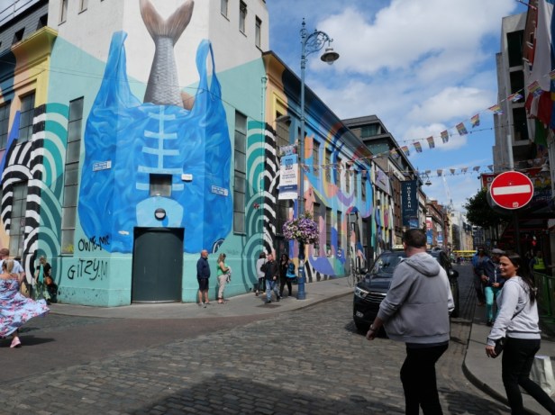 Nous repassons rive gauche et allons manger dans le quartier de Temple Bar nous y mangeons au Mongolian BBQ, sorte de wok à la mode irlando-mongole. Nous terminerons ces 3 jours de visites de Dublin par les fresques murales de Temple Bar en faisant une balade sympa sur Adair lane, Price’s lane et Bedford Lane, ces ruelles ont été livrées à des artistes et graffeurs pour illustrer la culture irlandaise.