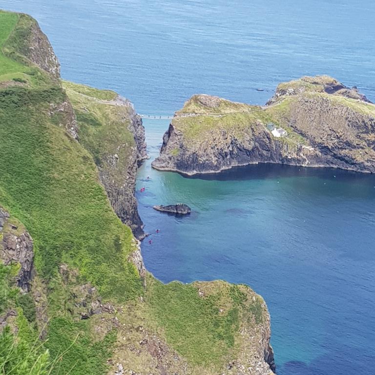 Le mardi 11 juillet nous partons sur Portrush à une dizaine de kilomètres pour y faire les vidanges avant de prendre le chemin de Carrick a Red, passerelle qui culmine à 24m au dessus des flots pour relier la terre à un rocher. Cette passerelle a été faite par les pêcheurs pour aller, du rocher, taquiner le saumon. Malheureusement nous ne pourrons pas y accéder car il y a une barrière de hauteur à 2,2m et aucun autre moyen pour stationner.