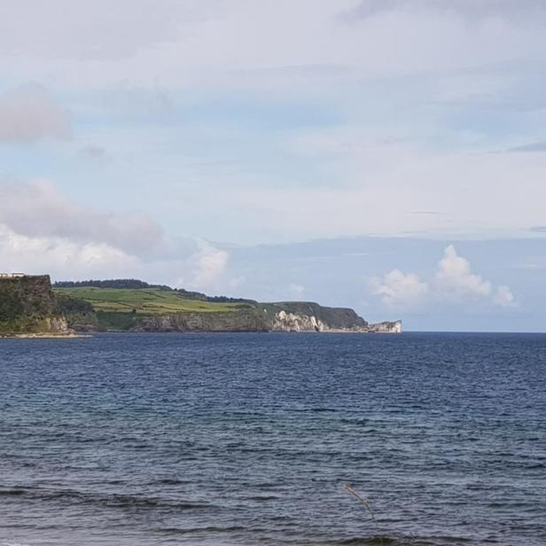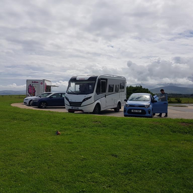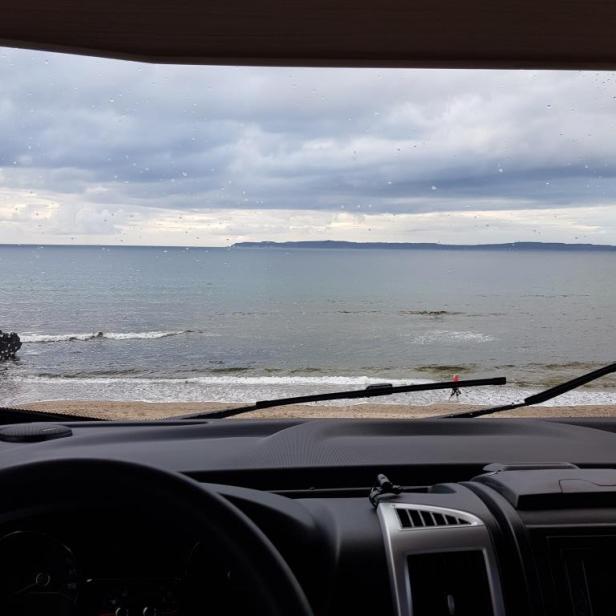 Mais sur place déception, le parking est blindé nous avons un plan B le parking du stade. De là nous partons en ballade jusqu’à un tout petit parking le long de la mer à Ballycastle Beach pour voir si nous pourrions nous y stationner. Sur place nous prenons la décision de nous y rendre avec le camion où j’arrive à me faufiler entre 2 voitures nous dînons face à la mer et y restons pour la nuit.