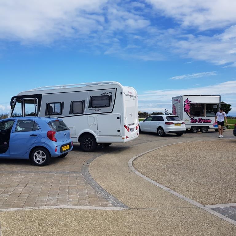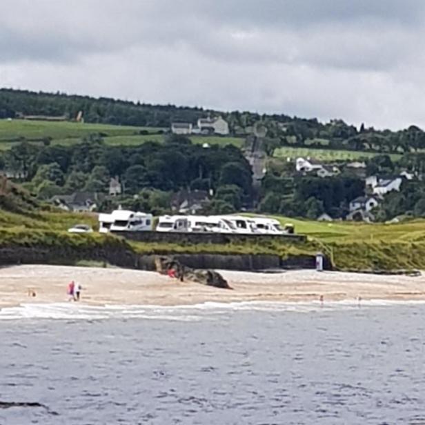 Nouveau départ le 12 juillet pour Glenarm ou Park4Night nous propose un stationnement à Glenarm marina, bien sûr arrivés au parking plus de place, je me mets donc à l’attente dans un endroit où je ne gène pas et 10’ plus tard une place se libère que je m’empresse de prendre. Carine a vue que nous pouvons visiter le château privé et sa collection de vieilles voitures, nous y allons donc derechef. A l’accueil nous apprenons que le château ne peut pas être visité car un festival est en préparation pour les 15 et 16 juillet. Nous repartons tranquillement au camion en passant par le bord de mer.