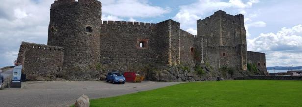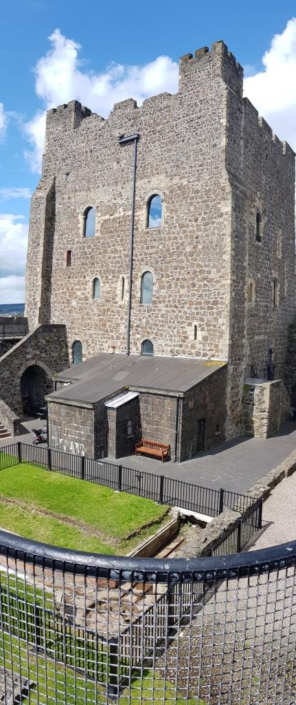 Le lendemain, nouvelle étape à Carrickfergus avant Belfast avec un grand parking au pied du château et en bord de mer ou nous passerons la nuit. Avant nous prenons la direction de l’imposant château fort Normand que Jean de Courcy a fait construire au XII siècle. Tour à tour assiégé par les Écossais, les Irlandais, les Anglais et les Français, ce château, qui a joué un rôle militaire important jusqu’en 1928, reste une des structures médiévales les mieux conservées en Irlande. Construit et reconstruit trois fois, il est encore debout. Les 3/4 d’eau entourant son périmètre conféraient une utilité stratégique à ce château qui, à l’heure actuelle est entretenu par la Northern Ireland Environment Agency comme monument historique à la garde de l’État.