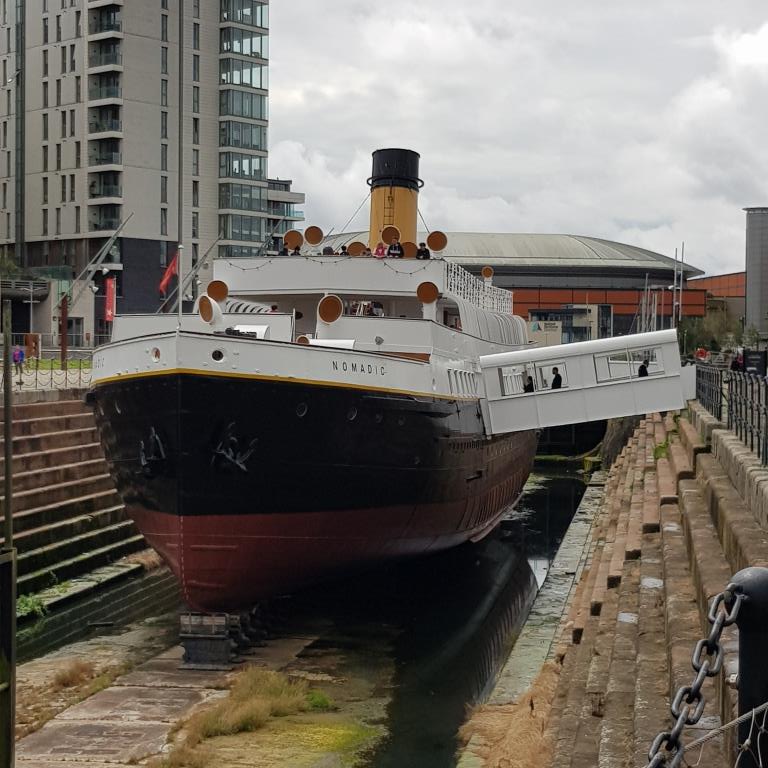 Ce samedi ce sera le Titanic Belfast pour cette découverte de Belfast. Nous réservons les places et ce ne sera pas avant 15h40. Nous décidons donc de commencer par le SS Nomadic, qui permettait de transporter les passager des quais au paquebot Titanic lorsque celui-ci ne pouvait pas accoster. A quelques centaines de mètres du Titanic Belfast, se tient le Nomadic, un paquebot de 1911, souvent surnommé comme étant le « petit frère du Titanic ». En parfait état, le bateau a été reconverti en musée, et nous offre une jolie plongée au cœur de l’Histoire de la White Star Line.