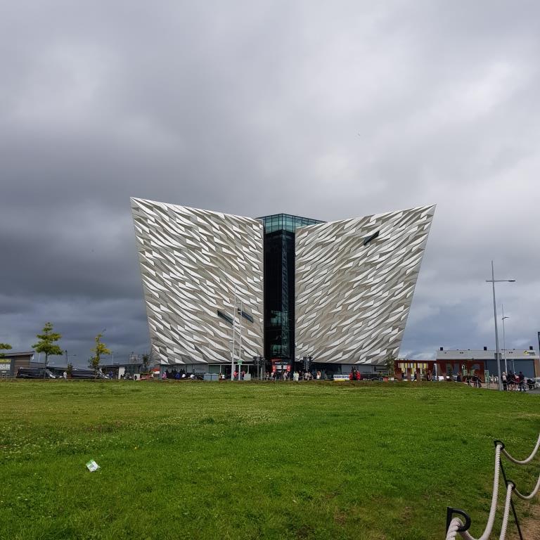 Le musée se dresse là, sur les docks de Belfast et ressemble tout bonnement à une coque de bateau étincelante fendant les eaux, avec ses multiples facettes couleur acier qui brillent au soleil.