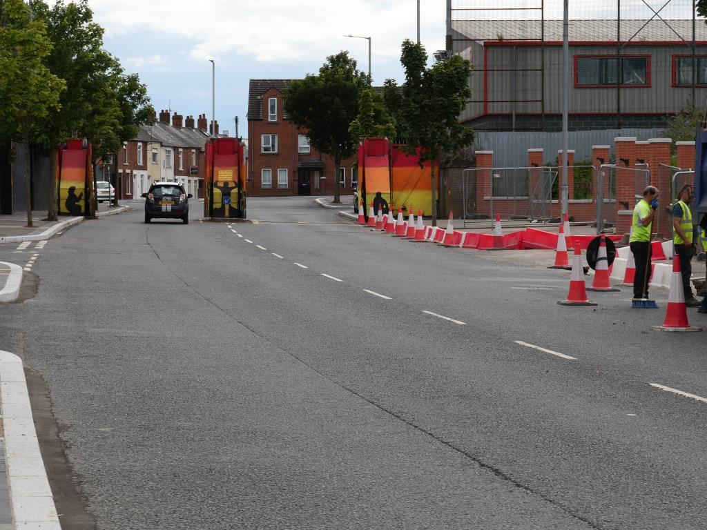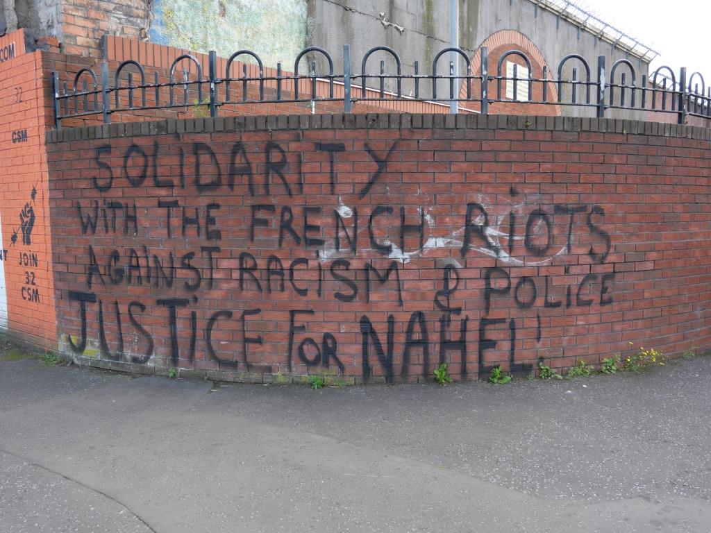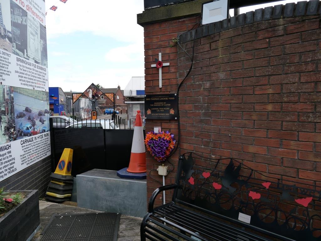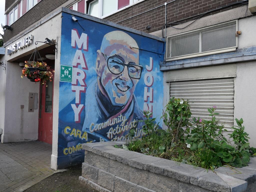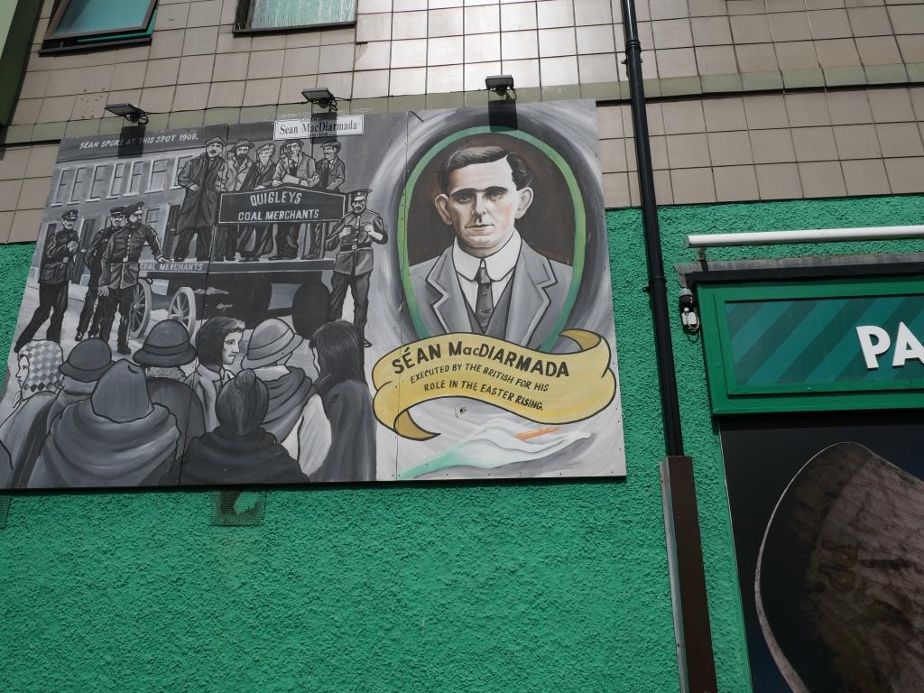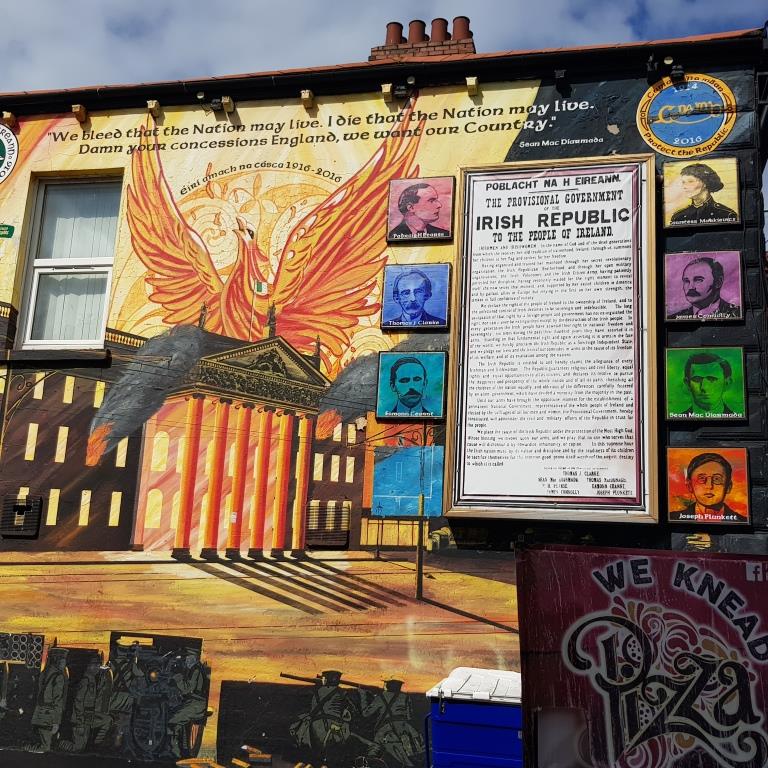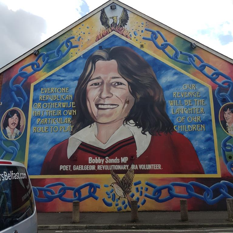 Nous allons ensuite voir les fresques loyalistes du quartier de Shankill essentiellement sur Shankill Road. Nous empruntons ensuite une des 2 rues qui passe la Peace Line genre de mur de Berlin qui sépare encore par de lourdes portes les quartiers falls catholiques du shankill. Ces portes peuvent encore être fermées lors de périodes de très grandes tensions ou lors de certaines festivités. Nous parcourons ensuite la Springfield Road théâtre de nombreux affrontements à l’époque de la présence incongrue d’une caserne de l’armée britannique aujourd’hui démantelée.