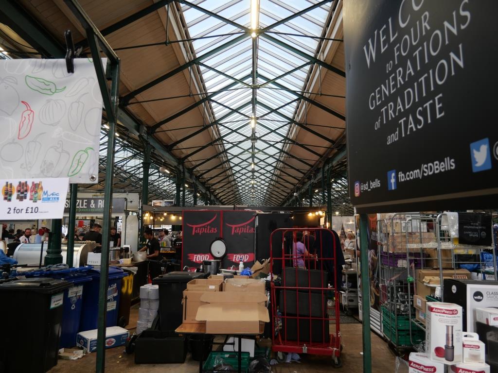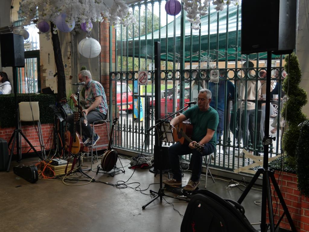 Dimanche 16 juillet le premier bus 1D est à 12h55, nous entreprenons vers 10h15 une diversion en allant chercher à 10’ du camping le G1 qui passe toutes les 20-25’ et nous amène également au centre de Belfast. Nous nous arrêtons devant le St George Market halle de brique et fonte datant de 1896 et qui le dimanche propose des stands d’alimentation et d’artisanat, nous avons la chance ce jour d’avoir également des musiciens.
