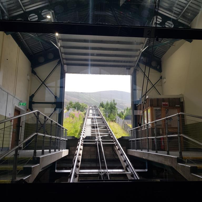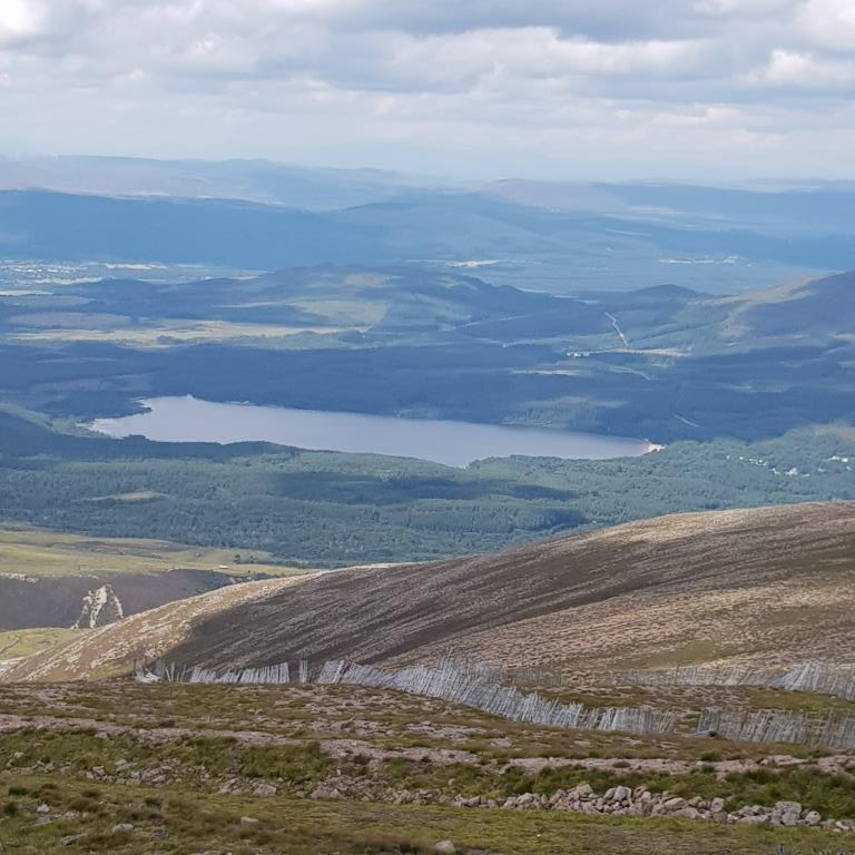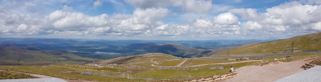 Nous montons à 1244m sommet du Cairn Gorm en funiculaire, l’ascension du parking au sommet doit s’effectuer tôt le matin or nous arrivons à midi et nous n’avons plus la condition physique pour l’effectuer. Nous déjeunons à la gare d’arrivée du sommet et après quelques photos, nous redescendons en direction d’Aviemore ou nous allons au camping High Range à la sortie de la ville.