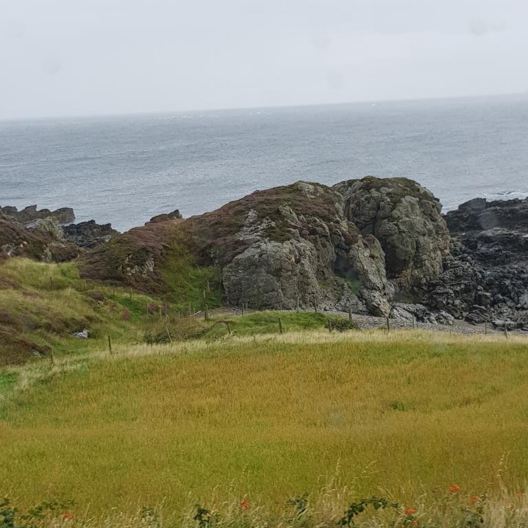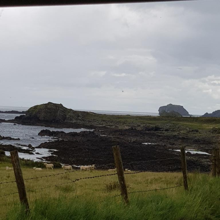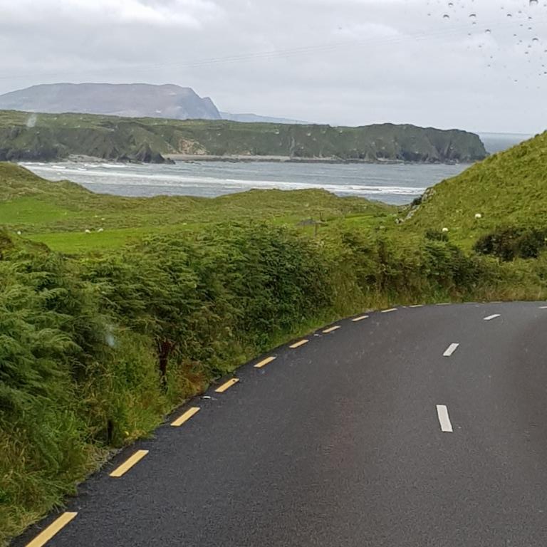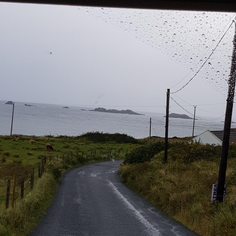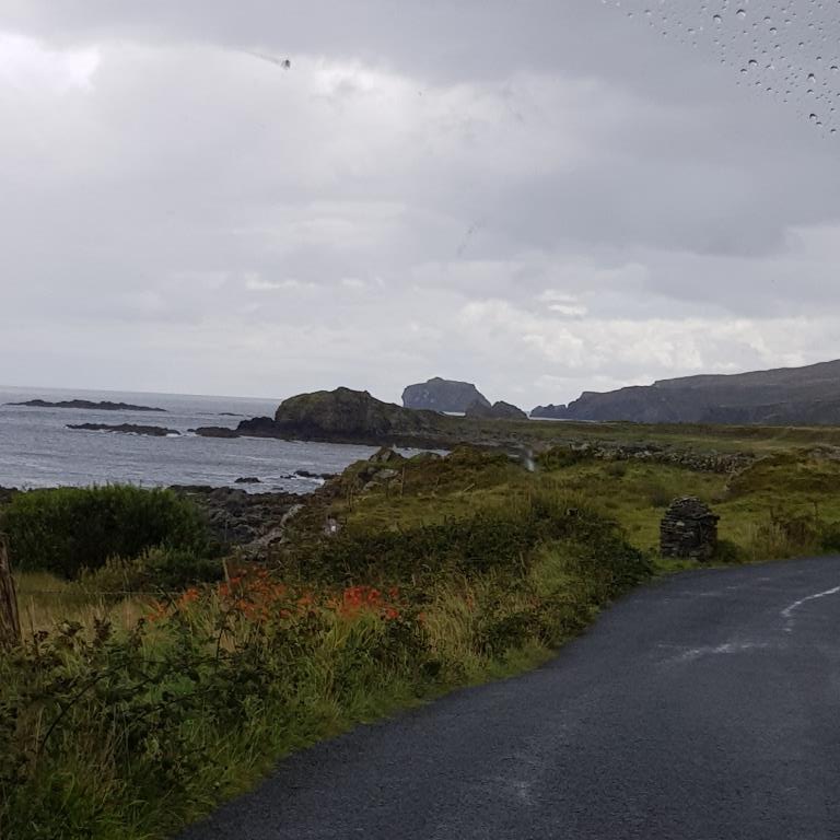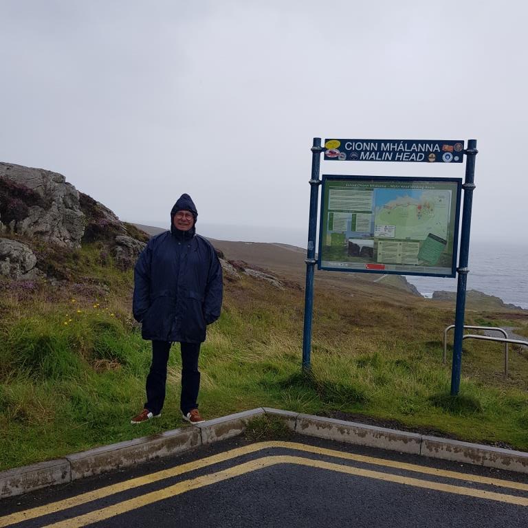 Dimanche nous partons pour Buncrana petite station balnéaire prisée par les Derriens. En chemin nous allons au point le plus septentrional de l’Irlande « Malin Head » situé à 55 degrés de latitude nord, début pour nous du Wild Atlantic Way. Pour plus d’authenticité, nous y sommes par une pluie battante qui écourte un peu notre passage et gâche notre plaisir.
