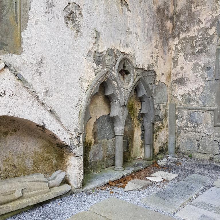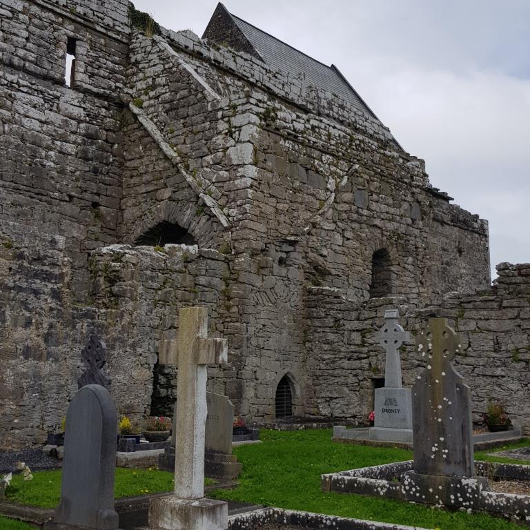 Le 31 nous allons à Ballyvaughan sur le chemin nous nous arrêtons pour voir le château de Kinvara que nous ne visiterons pas car payer 15€ pour voir un nième château en quasi ruines, nous préférons poursuivre vers l’abbaye de Corcomroe, abbaye cistercienne du début du XIIIème siècle aussi connue sous le nom de « Sainte Marie de la Roche Fertile » en référence au sol fertile du Burren.