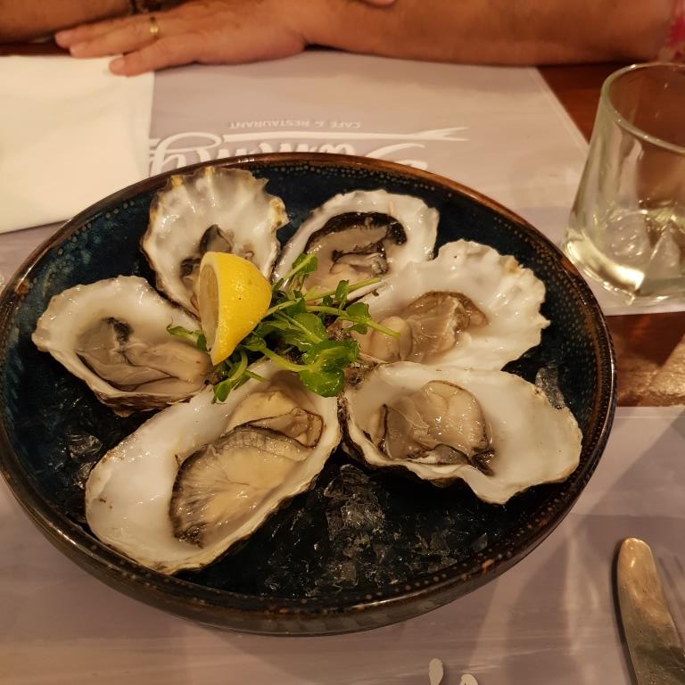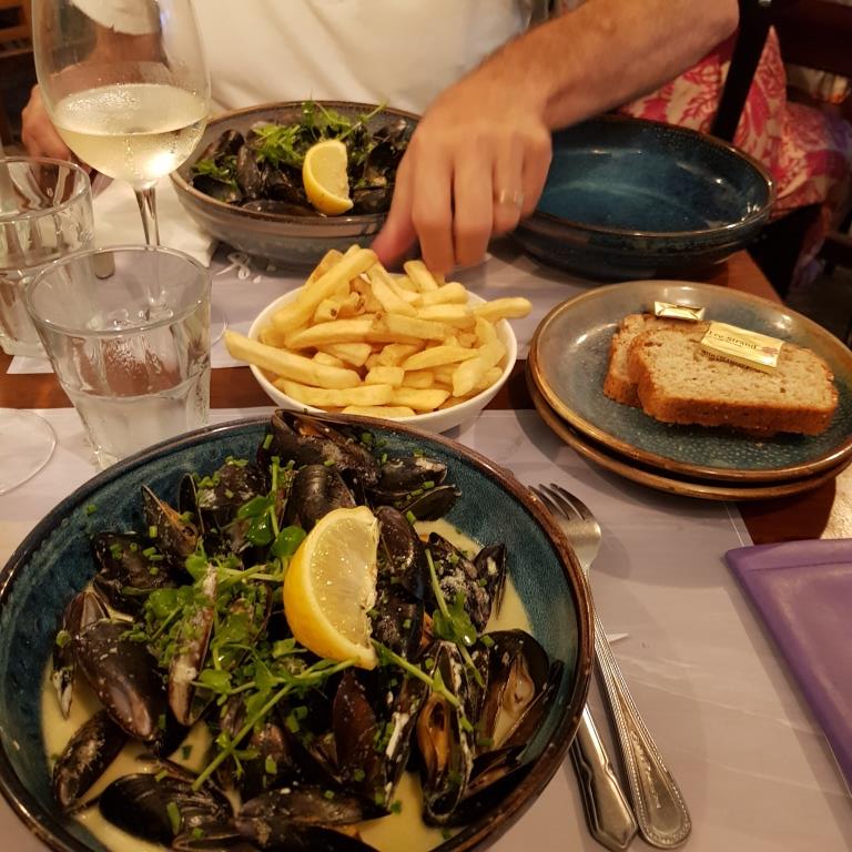 Le soir nous dinons au Sammy’s restaurant situé sur la plage car Carine à vue qu’il y avait des moules, nous prendrons, en plus des moules, 6 huitres pour nous deux en entrée.