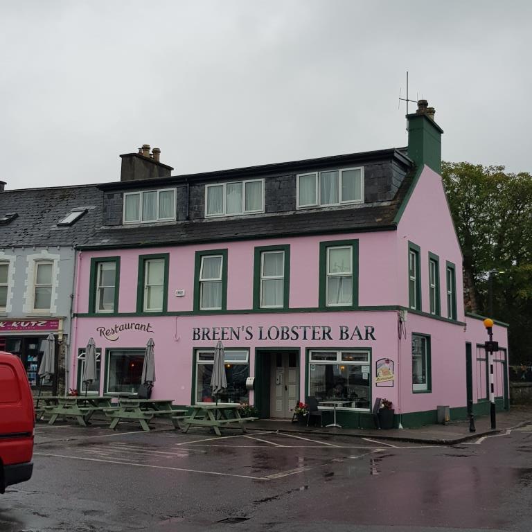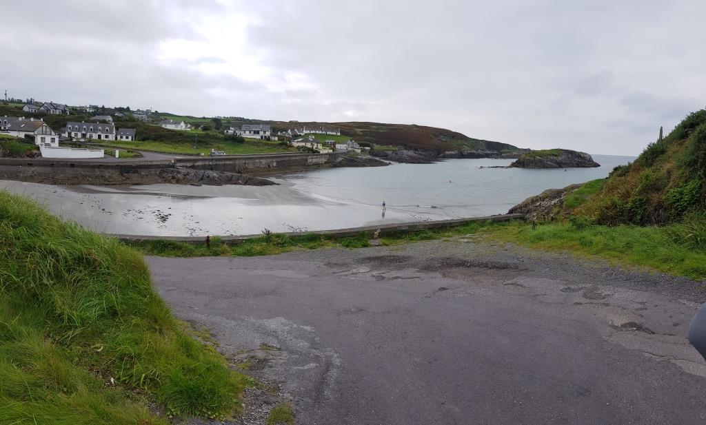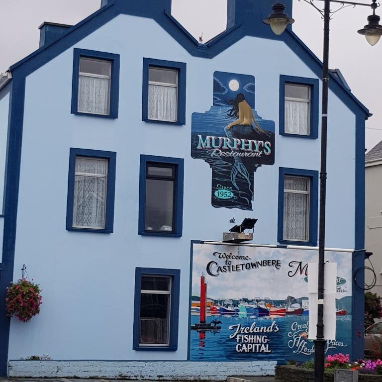 A quelques kilomètres de là nous arrivons à Castletownbere où la municipalité offre gracieusement un parking avec des emplacements spécifiques camping-car sans service. Nous allons déjeuner au Breen’s Lobster, qui n’a pas de homard à la carte car ce n’est plus la saison, nous nous rabattons sur des sandwichs au crabe. Pour digérer tout ça nous faisons le tour du port qui est le second port de pêche d’Irlande après celui de Killibegs du comté de Donnegal. Nous rentrons au camion in extrémis car la pluie commence à tomber et ne s’arrêtera que dans la nuit.