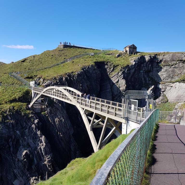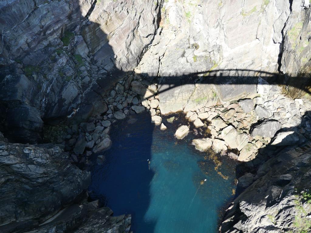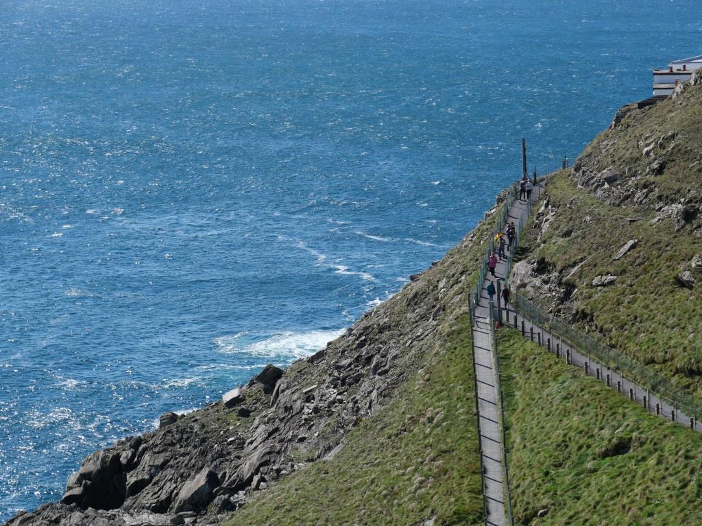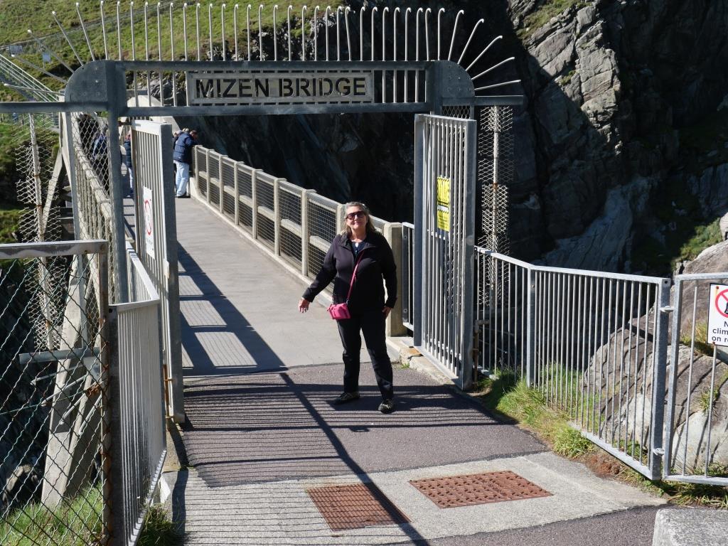 Aujourd’hui comme le temps de la matinée doit être ensoleillé, nous avons projeté d’aller à Mizen head, tête d’artimon en français, situé à 4,5 miles dans le nord ouest du fameux Fastnet. Sur la route de Mizen Head, le village de carte postale de Durrus est le dernier vestige de civilisation avant que la nature à l’état brut ne reprenne ses droits. Ici, à la pointe sud-ouest de l’Irlande, des panoramas grandioses sur l’océan s’offrent à nous à chaque virage. Au milieu des falaises et des vagues déferlantes, Mizen Head se dresse de façon spectaculaire dans l’océan Atlantique tourmenté. Témoin de la ténacité de l’homme, le poste de signalisation de Mizen Head résiste aux forces de la nature depuis plus d’un siècle. Ce poste fut construit pour avertir les navires en mer du danger des rochers qui gisent près du rivage. Aujourd’hui, un musée maritime primé a été construit près du poste de signalisation pour vanter son passé épique de sauvetage de marins. Le Centre d’accueil des visiteurs de Mizen Head est situé avant le poste de signalisation. À l’intérieur, on trouve toutes sortes d’expositions et d’accessoires maritimes, tels qu’une station météorologique automatique, un modèle réduit du spectaculaire phare du rocher du Fastnet et un simulateur d’aides à la navigation, ainsi qu’un étonnant collage photographique de la faune que l’on peut découvrir ici. À partir de ce centre, on avance vers le poste de signalisation proprement dit. Pour y arriver, on doit suivre un sentier côtier parmi les plus spectaculaires d’Irlande. Si on cherche les sensations fortes, on est servi, sans oublier le grand pont en arc de cercle qui relie le poste de signalisation à la terre ferme. On traverse ce pont à la merci des éléments tout en jetant un coup d’œil en bas, où avec de la chance on peut apercevoir des phoques, des dauphins et des baleines à bosse barboter. Dans le ciel, ce sont fous de Bassan, mouettes tridactyles et craves à bec rouge, le couloir migratoire des oiseaux se trouve à un peu moins de 2 km au large. Quand aux profondeurs des grottes marines, elles abritent les restes de L’Impatiente, une frégate française de la flotte du chef révolutionnaire irlandais Wolfe Tone du XVIIIe siècle, dont je vous ai parlé dans la paragraphe sur Buncrana de l’article « l’Irlande partie 9 ». À la station de signalisation, on découvre l’habitation du gardien, la salle des machines, la salle radio Marconi, la collection de cartes du Mizen et une exposition sur la faune sous-marine. Il ne faut pas oublier de regarder vers l’ouest, où on peut également admirer la lueur du phare du Fastnet. Surnommé la « larme de l’Irlande », cet édifice célèbre et poignant est le dernier souvenir que les émigrés irlandais emportaient avec eux de leur Irlande bien-aimée lorsqu’ils embarquaient vers de lointains rivages.