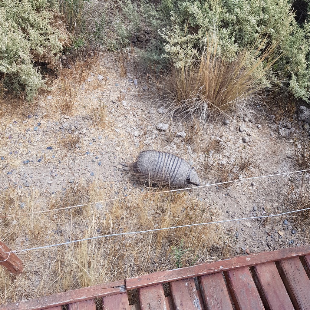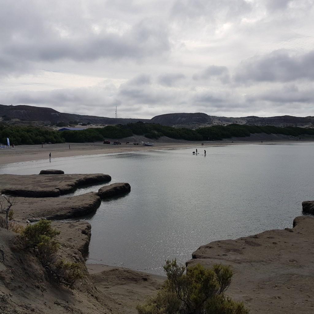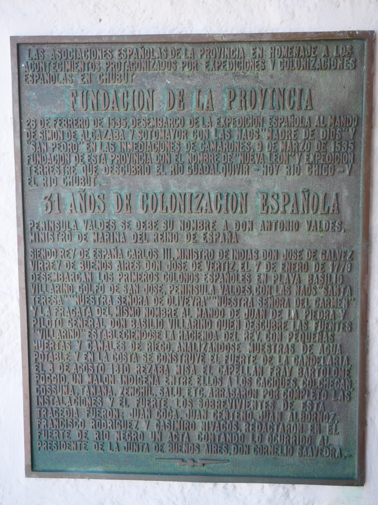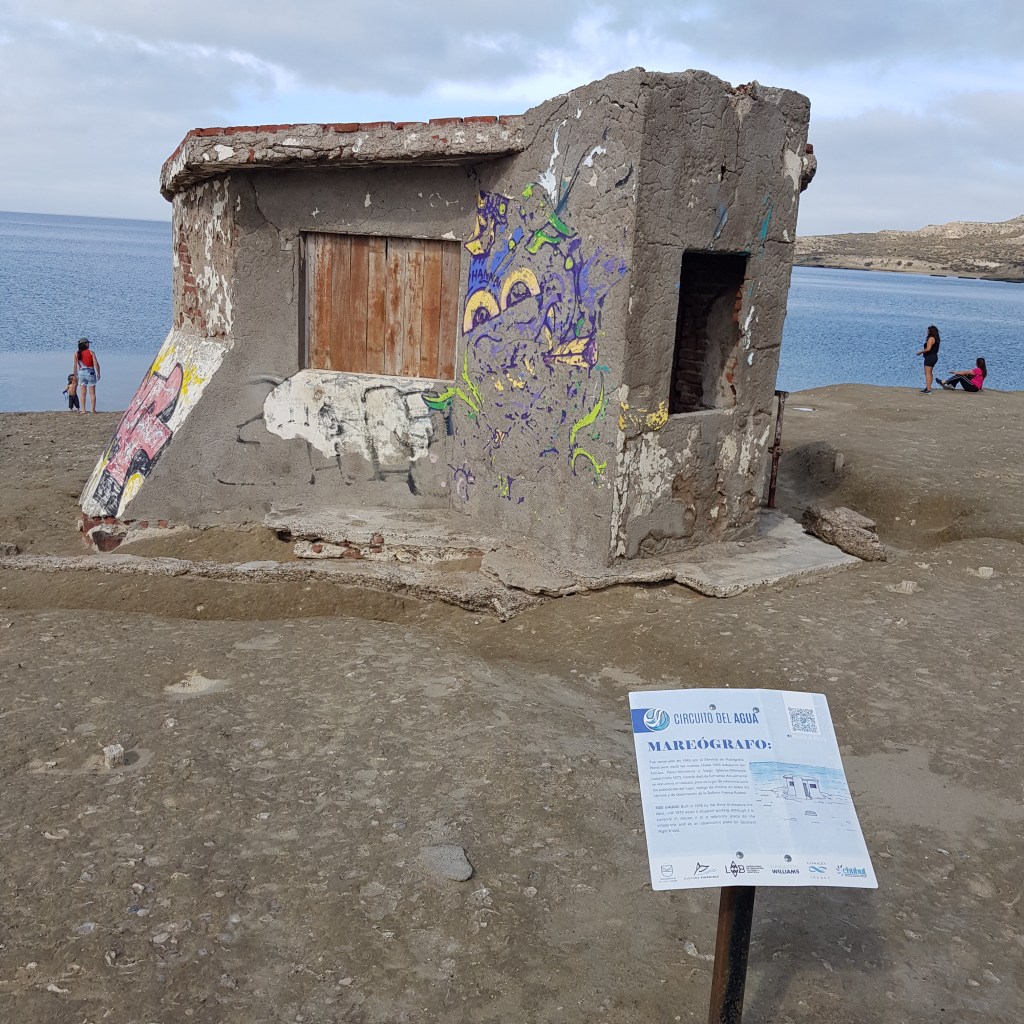 Nous allons ensuite en direction de Puerto Piramides, au début du 20ème siècle ce village abritait les ouvriers des salines, depuis il est devenu une petite station balnéaire d’une centaine d’âmes. Nous faisons une petite balade le long de la plage qui nous amène devant un ancien marégraphe. Cette baie aux eaux calmes accueille des baleines franches australes de juin à décembre, nous n’en verrons donc pas.