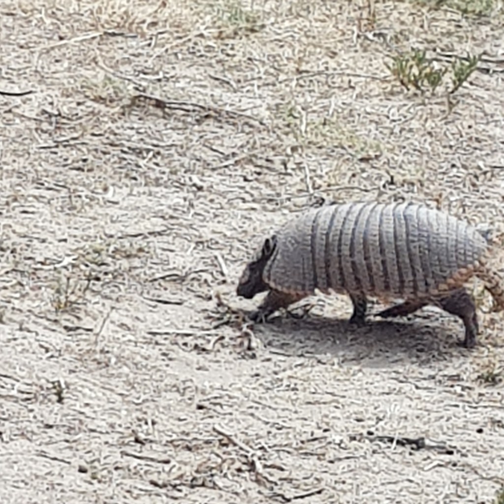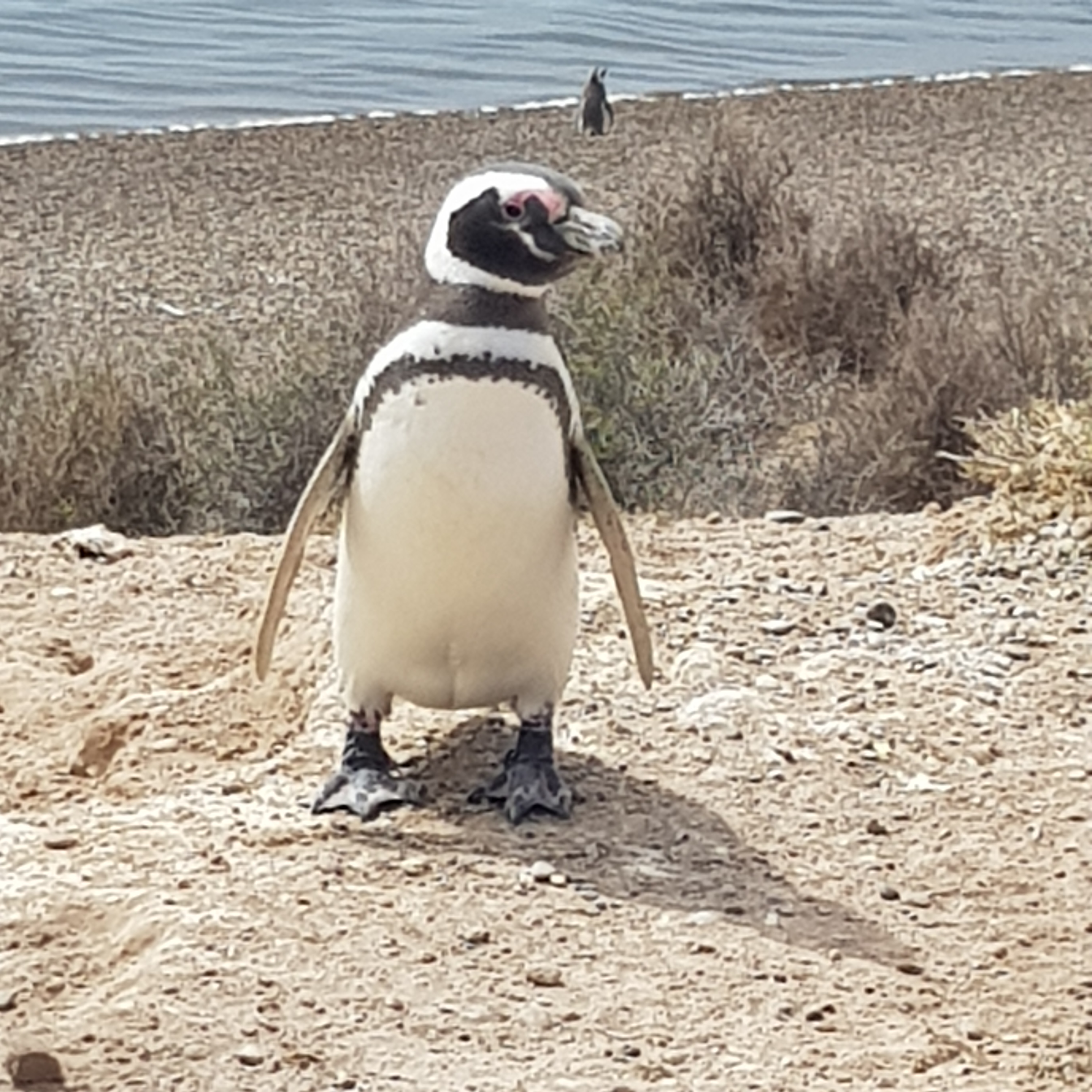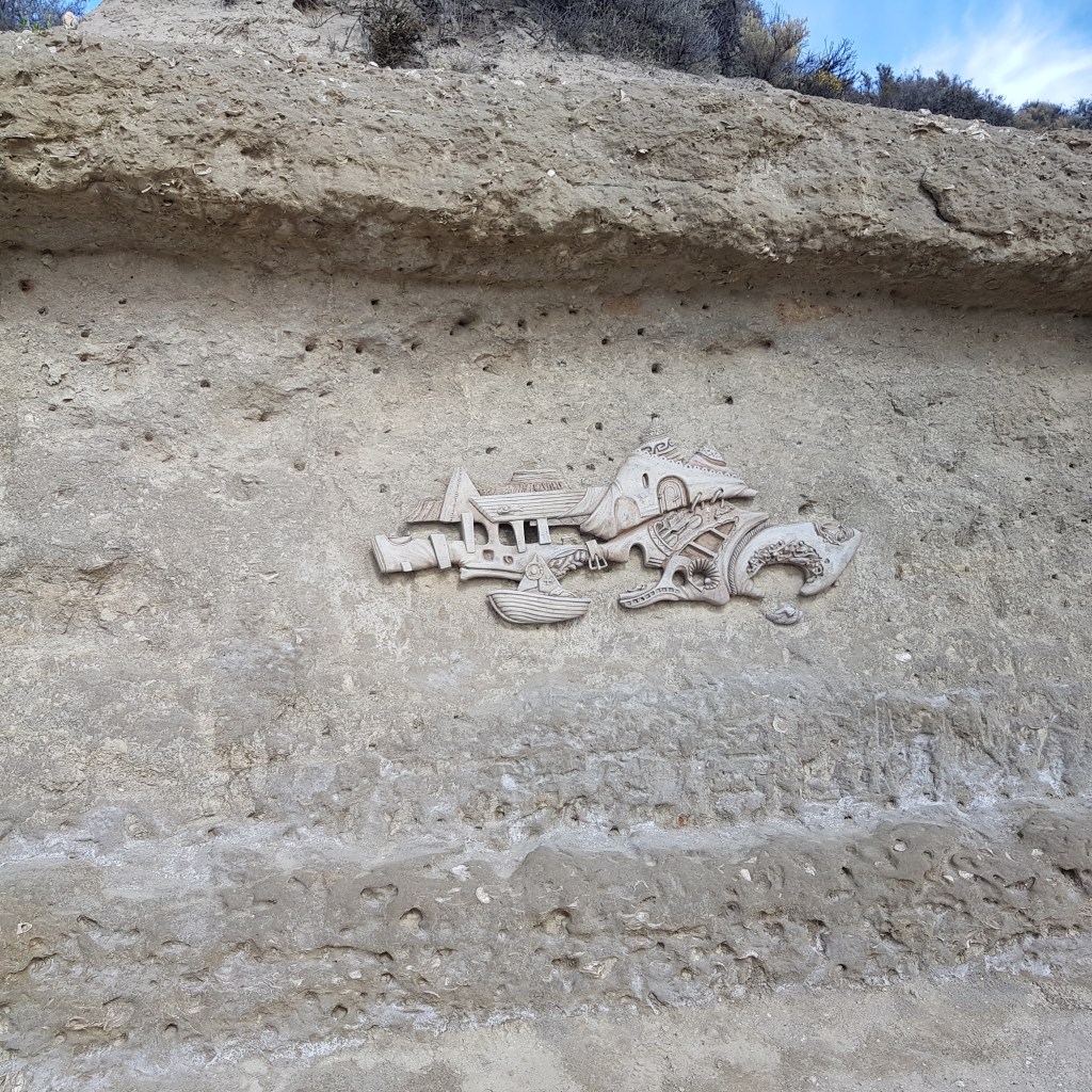 Nous allons ensuite en direction de Puerto Piramides, au début du 20ème siècle ce village abritait les ouvriers des salines, depuis il est devenu une petite station balnéaire d’une centaine d’âmes. Nous faisons une petite balade le long de la plage qui nous amène devant un ancien marégraphe. Cette baie aux eaux calmes accueille des baleines franches australes de juin à décembre, nous n’en verrons donc pas.