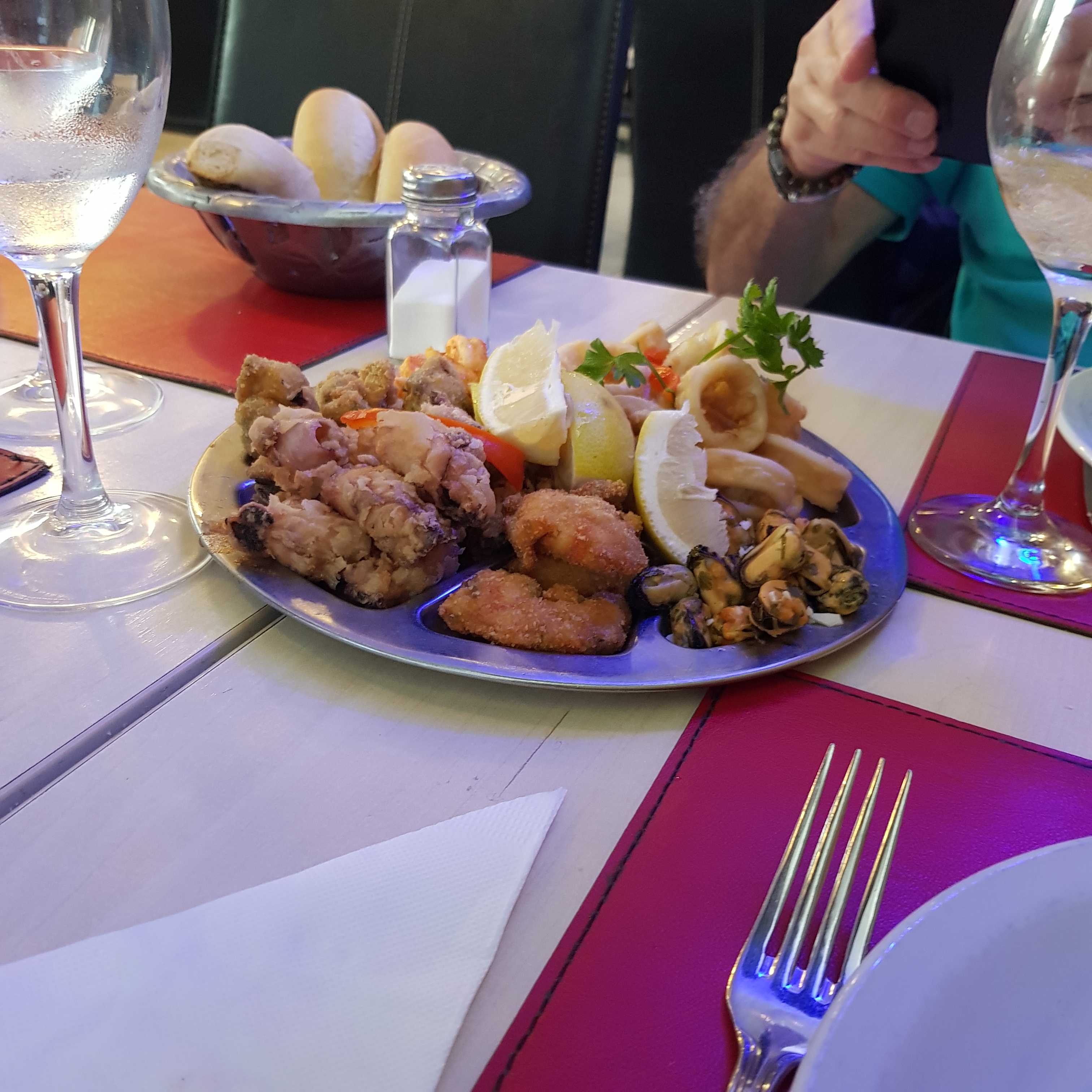 Nous rentrons à l’hôtel et sur les conseils de Pierre décidons de diner à la « Cantina el Nautico ». Le serveur nous propose de prendre seulement une entrée pour deux et un plat pour deux. Nous nous arrêtons et ne prenons pas de dessert car les quantités sont largement suffisantes pour un soir.