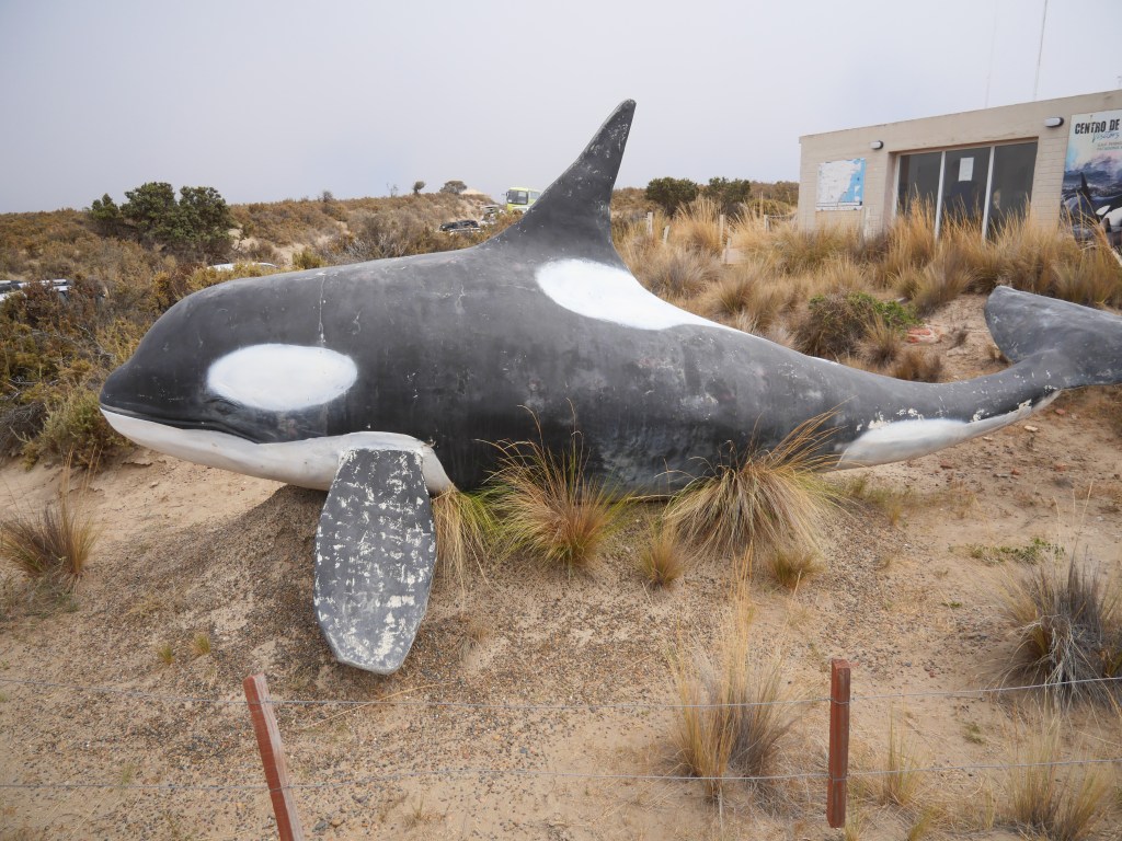 8h nous partons en direction de la péninsule Valdes dans « l’Aera protegida Peninsula Valdes », après une petite heure de route dans la steppe patagonienne nous arrivons au centre d’information où nous devons acquitter un droit d’entrée de 12600ARS (10€) par personne. Nous prenons quelques photos, un café et des bouteilles d’eau.