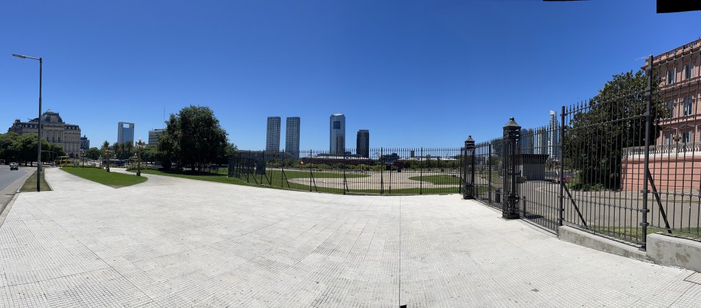 Nous passons devant la Casa de Gobierno ou « Casa Rosada » et partons en direction d’El Puente de la Mujere, sur le quai Juana Manuela Gorriti nous nous arrêtons au restaurant Juan Bautista. Nous y mangeons un assado de bife de chorrizo avec des frites, le tout arroser d’une bière pression pour 34€ pour nous deux.