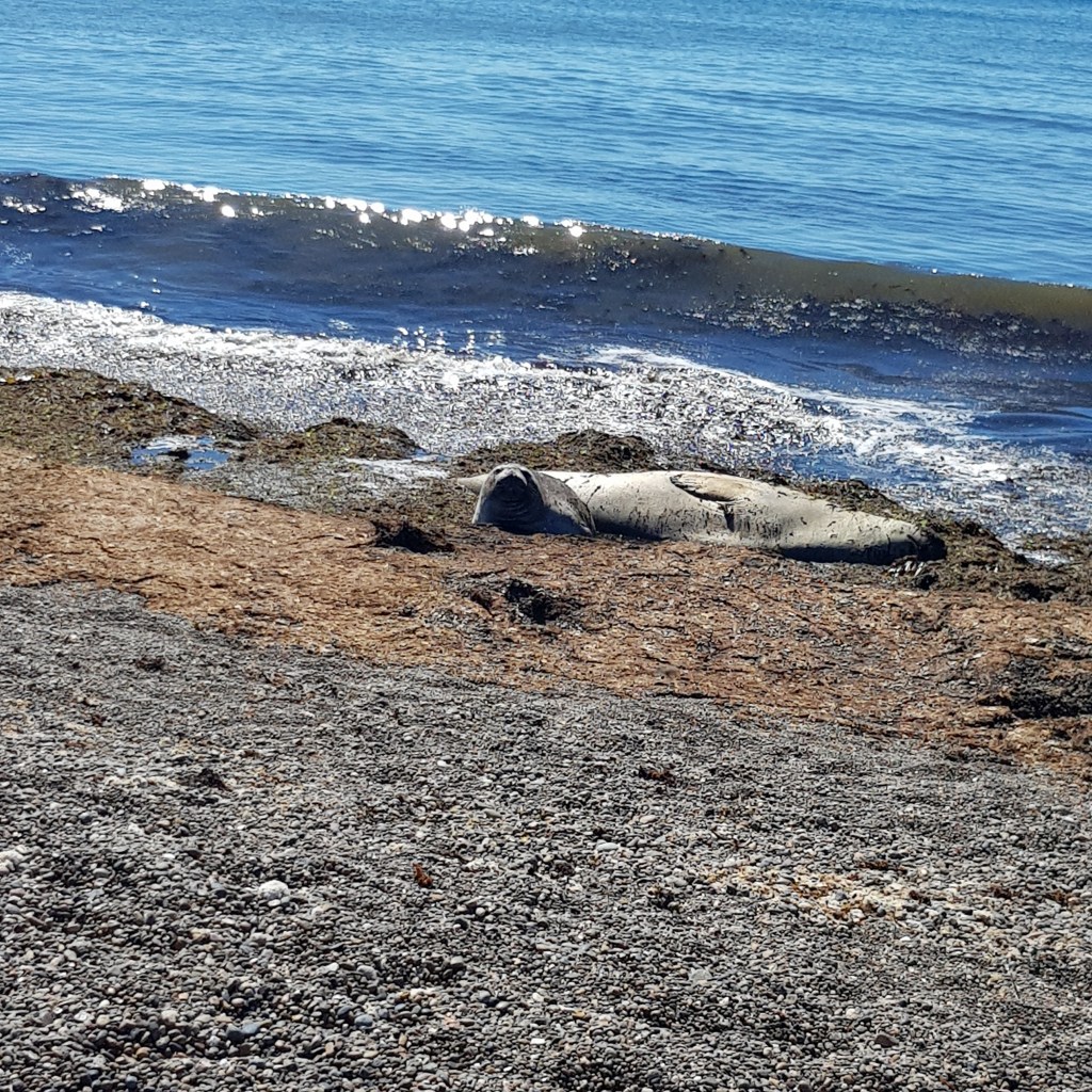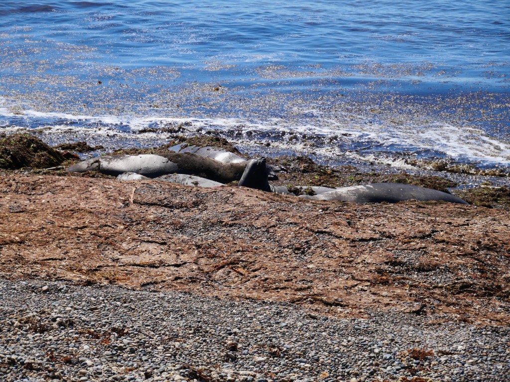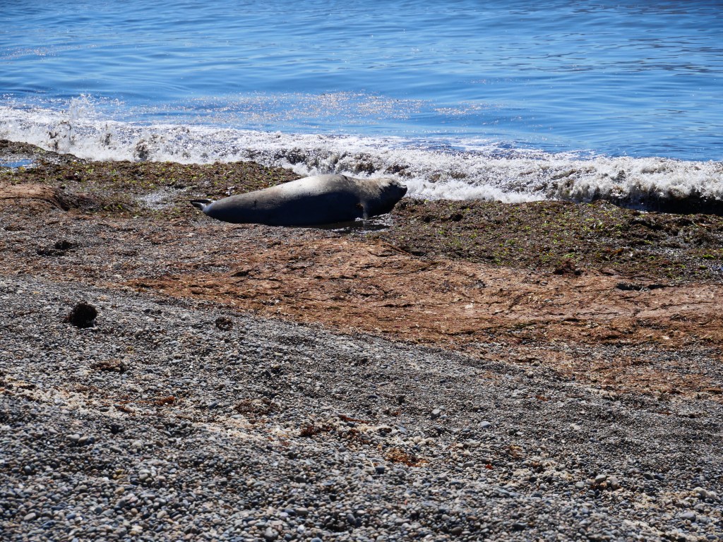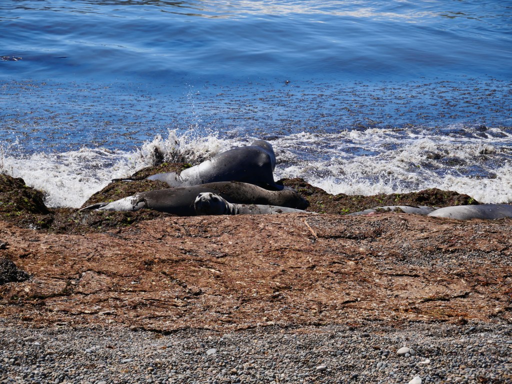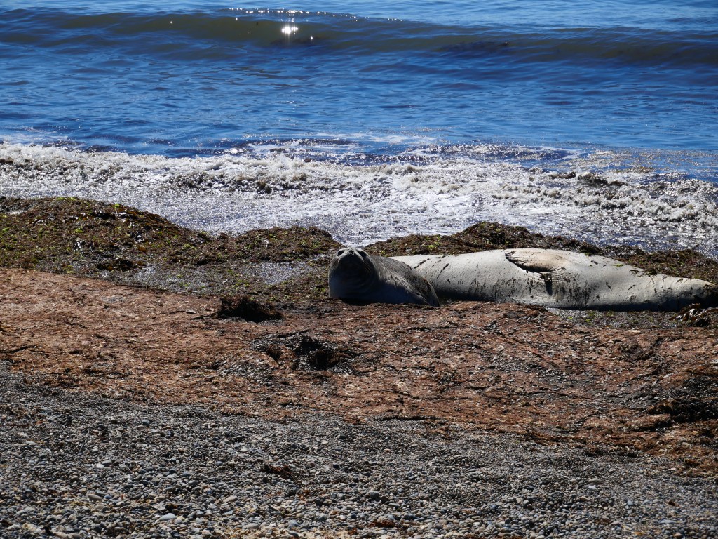 Aujourd’hui, nous avons comme destination Punta Tumbo, Pierre vient donc nous chercher à 9h à l’hôtel. En chemin nous passons par Isla Escondida où il y a plusieurs colonies d’éléphants de mer sur la plage. Nous pouvons ici nous approcher à environ 15m des éléphants, distance minimum pour ne pas les déranger car nous sommes chez eux et non chez nous. Il y a ici une colonies d’une vingtaine d’individus, des jeunes de l’année et quelques jeunes de l’année précédente. Ce sont tous des juvéniles car ils n’ont pas encore de « trompe », cette excroissance qui leur permet d’impressionner les autres mâles lors de la période de reproduction.
