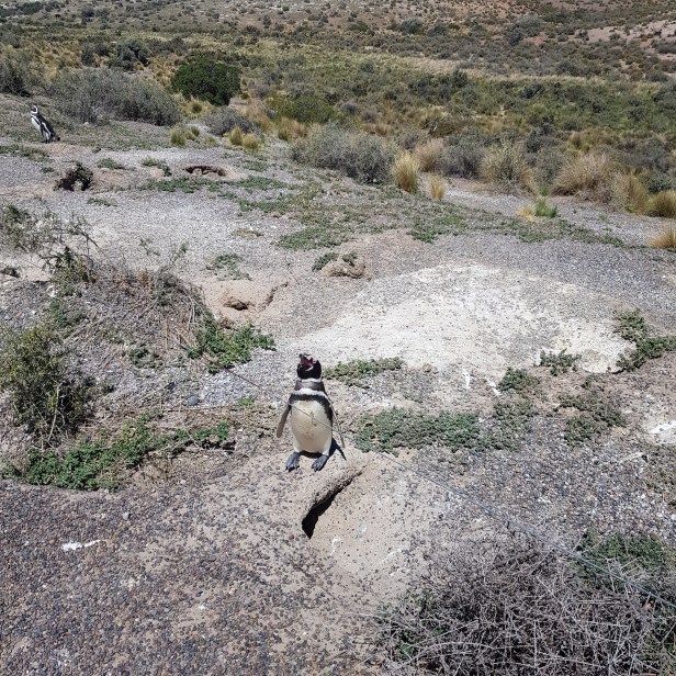 Nous mangeons à la cafétéria du site et après avoir acheté les billets d’entrée nous allons nous balader dans un espace de plusieurs hectares où, pendant la période de reproduction environ 700 000 manchots de Magellan vivent ici.