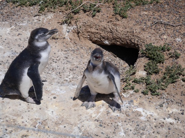 Cette aire naturelle protégée « Cabo Dos Bahias » est au sein d’une hacienda. Le propriétaire de cette hacienda, un Gallois, qui en remerciement de la fortune qu’il a amassé sur le sol argentin a donné une partie de son domaine où nichent les manchots de Magellan. Après 2 heures de flânerie dans ce parc, nous prenons le chemin de Puerto Madryn, et là sur le bord de la route nous pouvons voir une femelle nandou avec ces deux petits. Les nandous font parti de la famille des Rheidae comme les émeus et les autruches, les nandous sont les plus petits des 3.