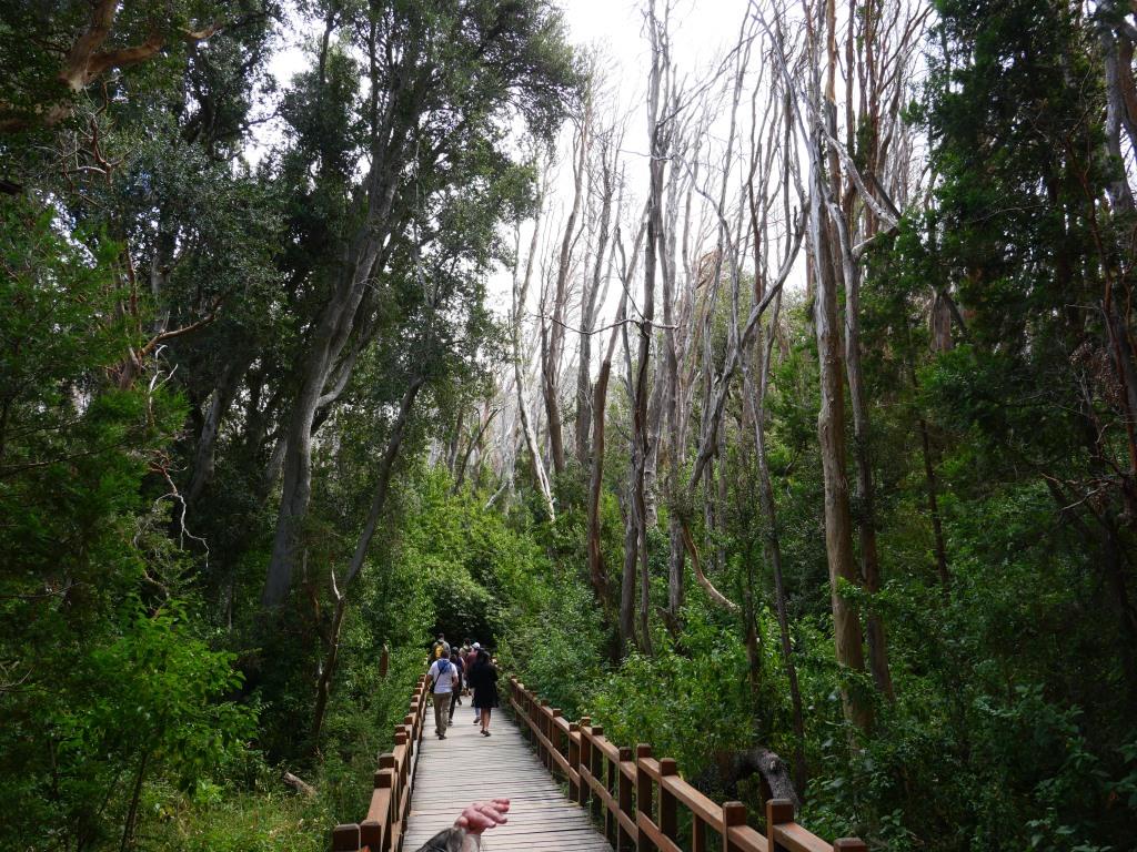 Nous reprenons ensuite le bateau direction Isla Victoria où l’on fait une promenade dans la forêt. On passe par l’ancien centre de formation des forestiers, on finit le parcours par une forêt de pins puis une autre d’eucalyptus. En lieu et place d’essences importées type eucalyptus les forestiers replantent maintenant des espèces endémiques de Patagonie des Araucarias.