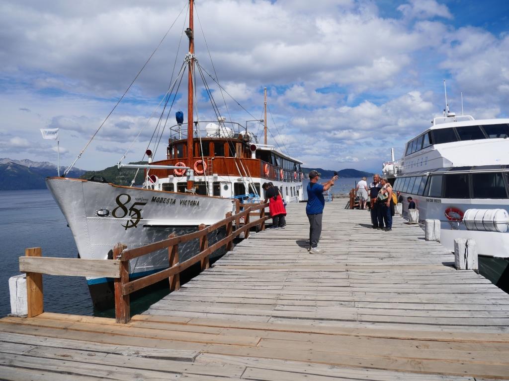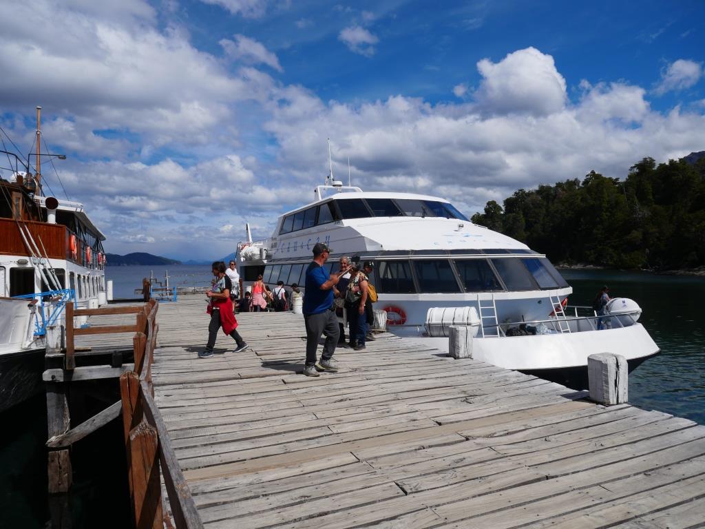 Aujourd’hui Maximo vient nous chercher à 12h30 pour le port de Pañuelo ou nous prenons un bateau catamaran pour une navigation d’environ 2h sur le lac Nahuel Huapi et nous rendre au port de Quetrihue, ponton qui permet d’aller dans la forêt d’Arrayanes. Nous sommes donc dans la forêt pour une balade d’1km environ dans ce « parc « Parque Nacional Arrayanes » qui fait partie du Parque Nacional Nahuel Huapi.