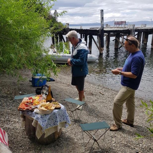 Nous parcourons avec Boris les vestiges de ce centre de recherche. En retournant sur la petite plage où nous avons débarqué, une picada nous attend pour le déjeuner. Une fois restaurer nous rentrons directement car le temps s’est dégradé et le lac lève des vagues qui nous obligent à naviguer lentement.