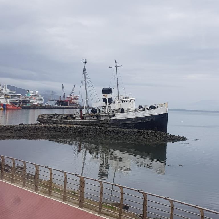 Le transfert nous amène directement à l’hôtel Mil810 où nous laissons nos bagages car le check-in est à 14h. Ce matin nous décidons de faire le tour de la ville en bus à impérial, notre excursion commence par la Plaza Cívica d’Ushuaïa nous passons ensuite par le centre commercial de la ville. Nous pouvons y voir la plupart des maisons des premiers colons. Ensuite, nous entrons dans la zone restreinte de la Base navale, où se trouvent les premiers bâtiments publics de la ville, la réplique du phare de la fin du monde et l'ancienne prison. De là, et le long de la rue Gobernador Paz, nous nous dirigerons vers le Marché du Centenaire, point panoramique d‘où l’on peut voir les chaînes de montagnes qui entourent la ville, ainsi que les îles de l‘autre côté du Canal Beagle. Nous allons ensuite « al lago del diablo » (le lac du diable) qui doit son nom à une vieille croyance, car l’hiver les animaux qui y allaient n’en revenaient jamais sans doute que le diable les emportaient, mais il est plus vraisemblable qu’ils se noyaient dans le lac gelé en brisant la glace pas assez épaisse pour leur poids. On descend ensuite au niveau de la mer pour voir le navire échoué « San Christopher » (Saint Christophe), en 1953, il a été affrété pour des opérations de renflouement dans le Canal Beagle sur le site de l’épave du liner Monte Cervantes1 parmi d’autres navires de la marine argentine. Le déséchouage ayant été un échec et le remorqueur ayant subi des problèmes de moteur et des avaries de gouvernail en 1954, il a été remisé à Ushuaïa. Il y a été échoué et abandonné en 1957 et, en 2004 les soutes ont été vidées du mazout restant. On termine la balade en bus par le Musée maritime et l’ancienne Prison d`Ushuaïa , que nous visiterons de retour d’Antarctique.