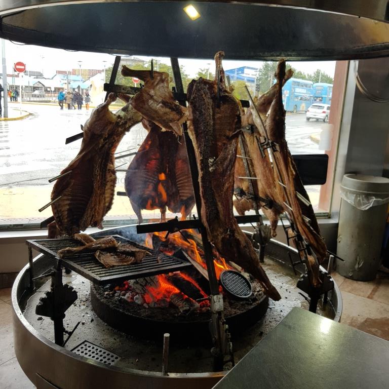 De retour nous décidons de déjeuner à Tia Elvira, restaurant dont la spécialité est le King crabe, mais devant le temps d’attente nous nous rabattons sur le restaurant Casimiro Bigua Parradilla et Asador. Nous y dégustons un cordero para uno (un plat d’agneau au feu de bois pour une personne) avec des verduras grilladas (des légumes grillés) le tout arroser d’en vin rouge chilien.