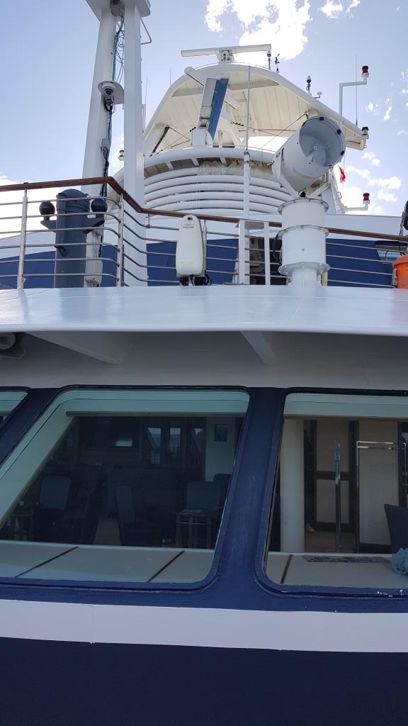 Ce 13 février à 16 heures nous embarquons sur Exploris One où nous sommes pris en charge par la responsable clientèle Fiona Bruni. Elle nous donne notre carte de chambre et nous oriente vers la médecin du bord pour le contrôle médical (un questionnaire Covid).
