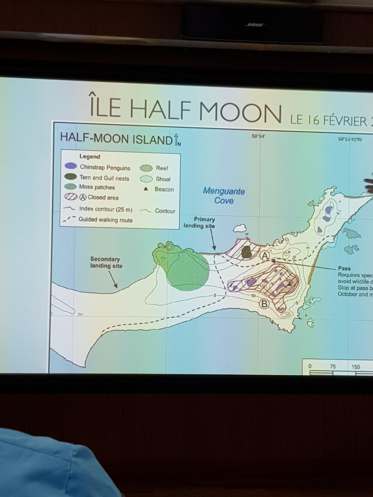 Pendant cette traversé nous sommes gratifiés de conférences dispensées par l’équipe d’expédition et des scientifiques. Le matin c’est observation des oiseaux avec des ornithologues et présentation de l’itinéraire par la cheffe d’expédition, Florence Kuyper, et l’après midi nous avons une réunion d’information kayak, réunion d’information IAATO et une introduction à l’Antarctique « A la découverte du continent blanc ».