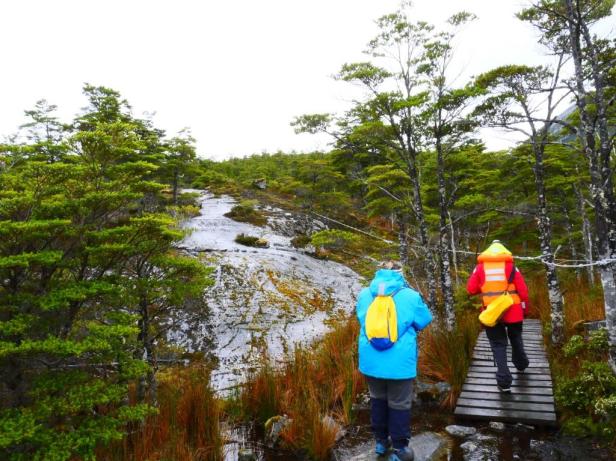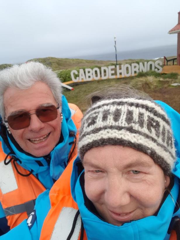 Après 2 heures de balade nous retournons au bateau pour prendre la direction du Cabo de Hornos (cap Horn) où nous débarquons à 17h30. Nous arrivons à marée basse ce qui nous permet d’aller à terre car ce matin à pleine mer, la houle était trop forte pour nous laisser débarquer en toute sécurité. Nous commençons par la montée d’environ 400m de falaise pour arriver sur le « plateau ».